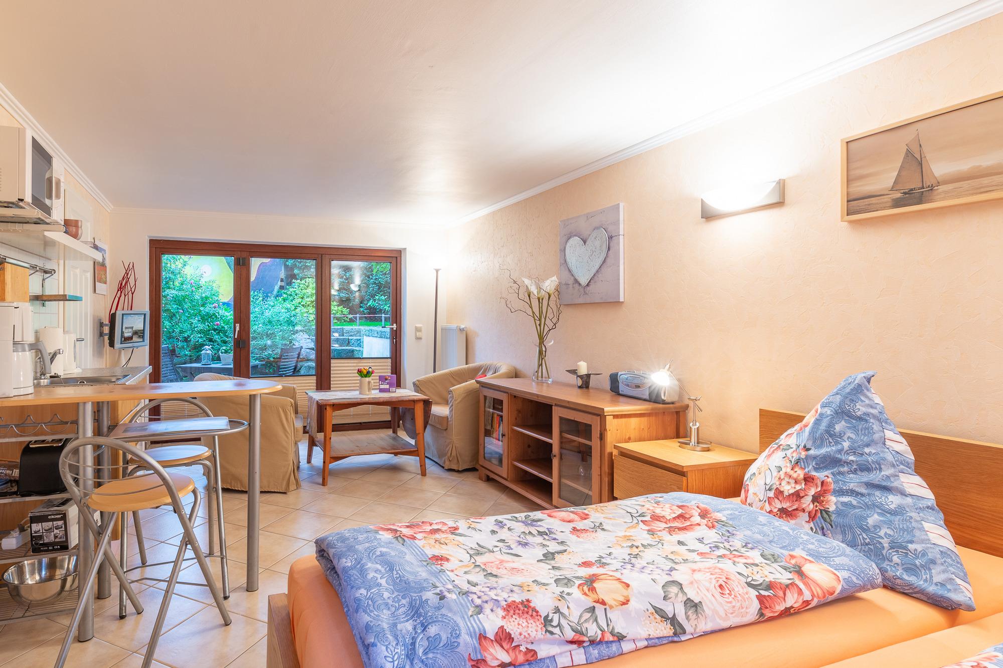 Das 1-Zimmer-Ferienappartement Giewald im Souterrain befindet sich im Zentrum von Boltenhagen und ist etwa 800 m vom Strand entfernt. Das Appartement bietet mit einem Doppelbett im Schlafzimmer Platz für bis zu 2 Personen. Es verfügt über eine Küchenzeile mit Mikrowelle und Kaffeemaschine. Die Terrasse mit Sitzgelegenheit lädt zum Genießen und Verweilen ein.
