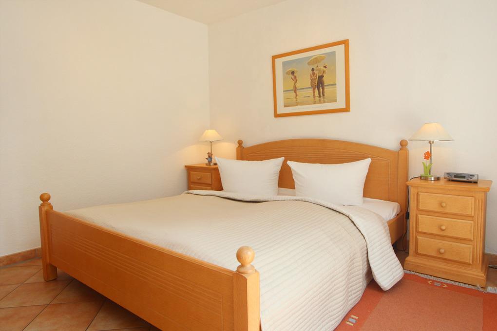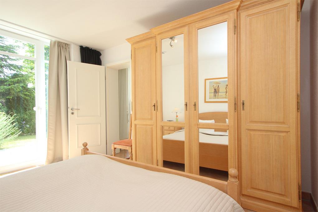 Im Schlafzimmer sorgt ein bequemes Doppelbett (180x200cm/ Höhe 57cm) für erholsamen Schlaf, im passenden Kleiderschrank können Sie Ihre Urlaubsgarderobe ablegen. Der Schlafraum kann gut abgedunkelt werden.