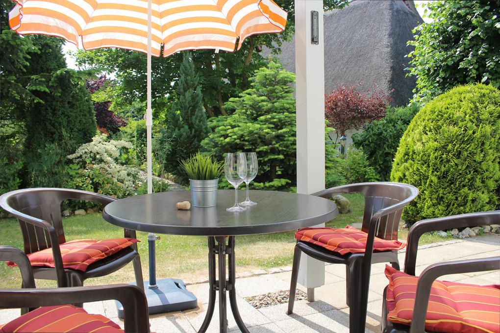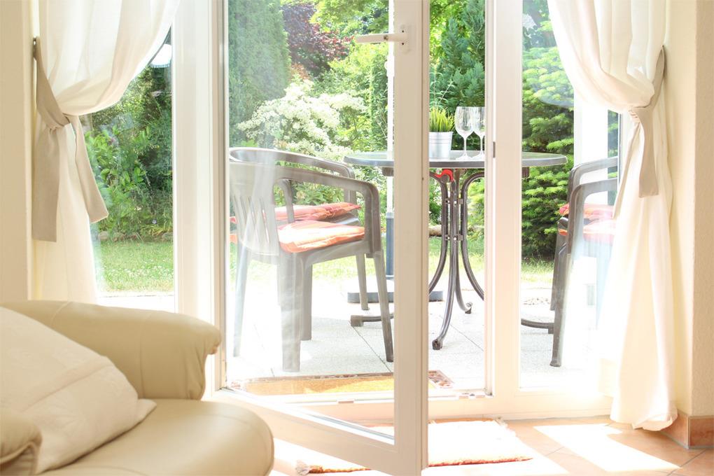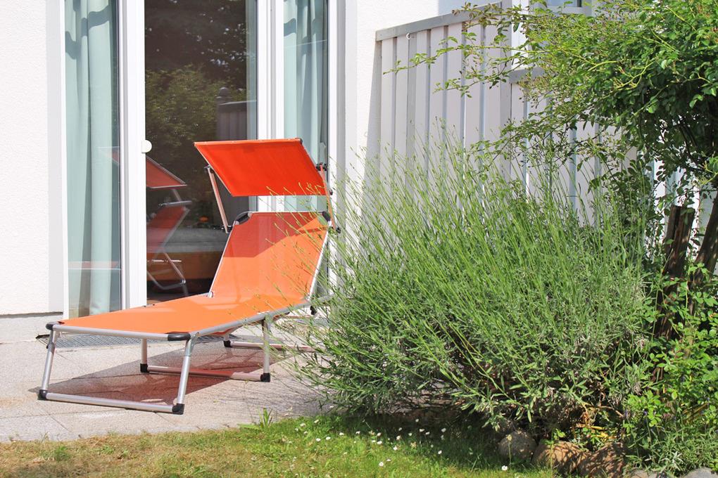 Die schön möblierte Südwest-Terrasse können Sie sowohl vom Wohnzimmer als auch vom Schlafzimmer aus erreichen.