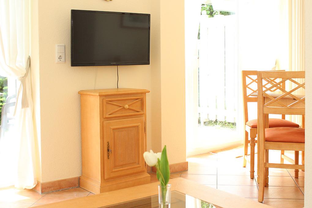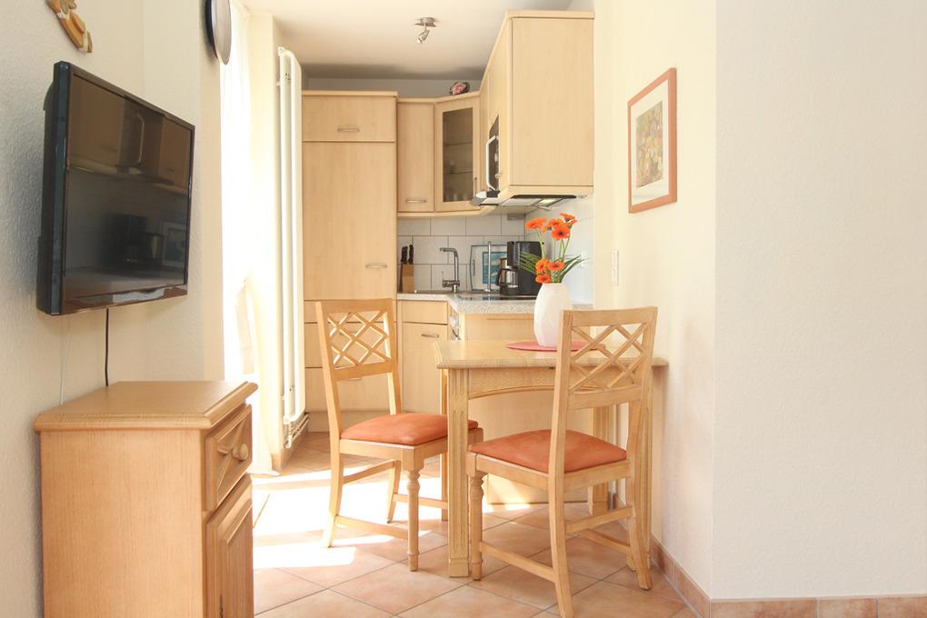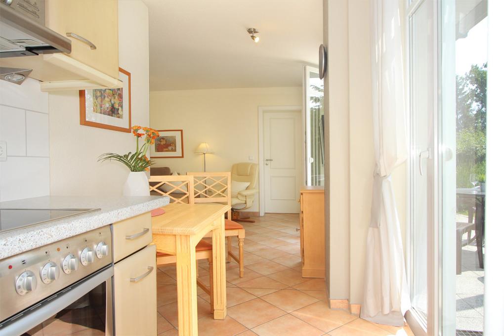In der sehr gut ausgestatteten Wohnküche finden Sie sämtliches Zubehör, um sich auch mit Kochen und Backen problemlos selbst versorgen zu können. Die Mahlzeiten können Sie anschließend gern an der Essecke einnehmen.