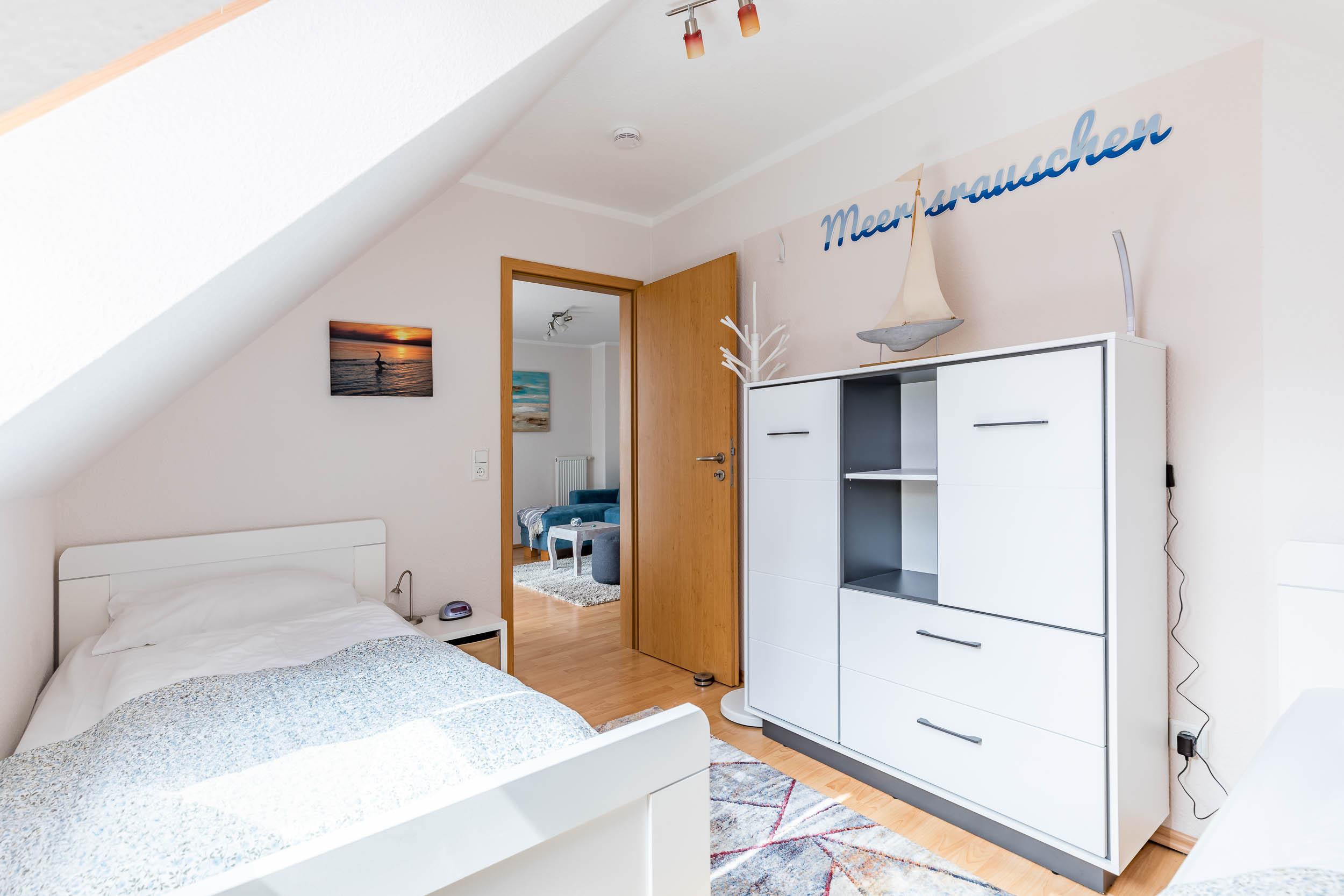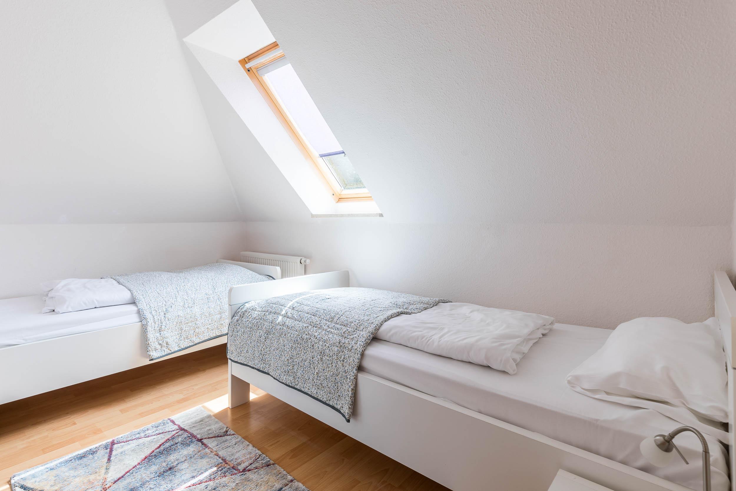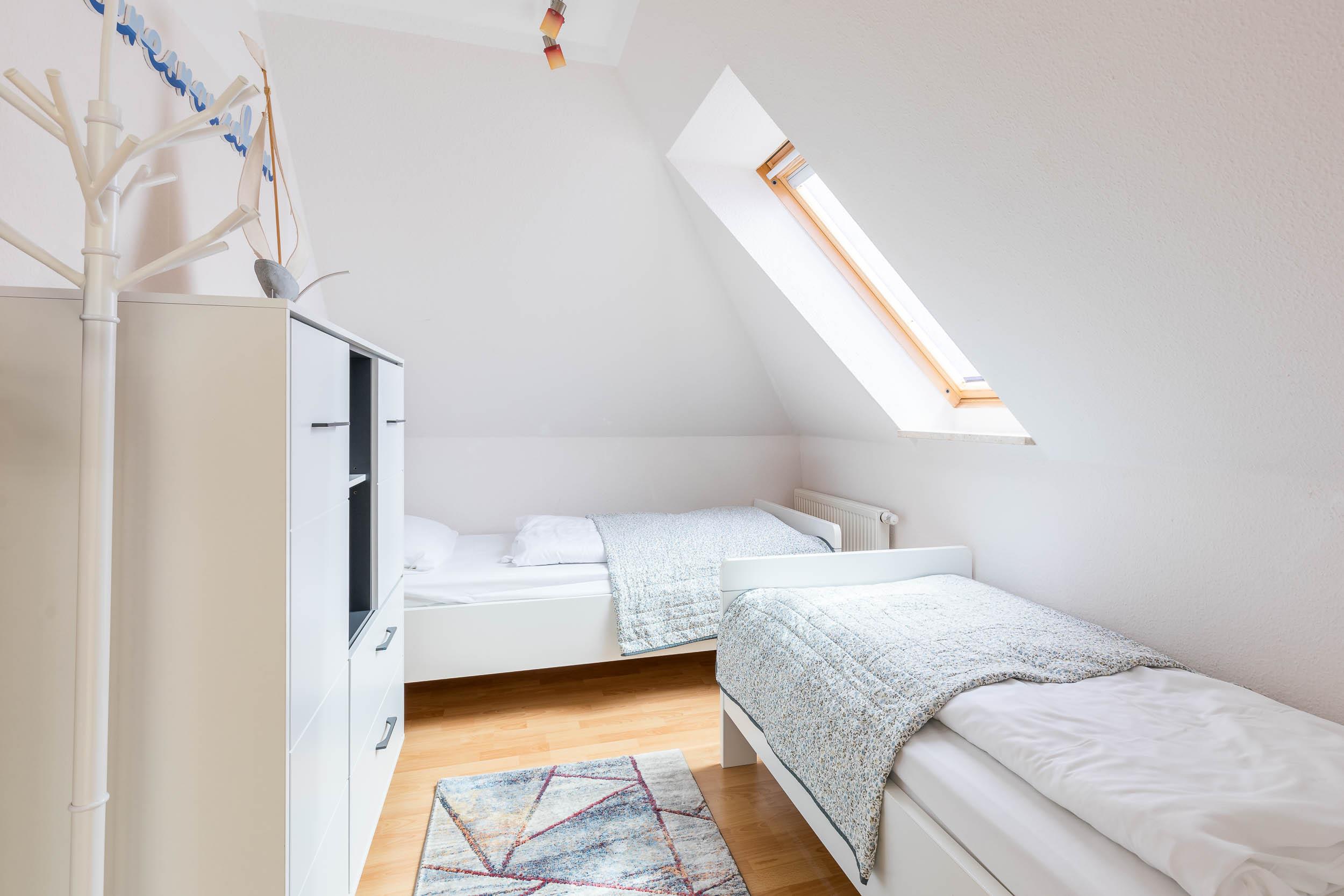 Das Gäste-/ Kinderzimmer auf dieser Etage ist mit zwei bequemen Einzelbetten (je 90x200cm/ Höhe 56cm) eingerichtet, auch Ablagemöglichkeiten für Ihre Kleidung sind hier vorhanden.