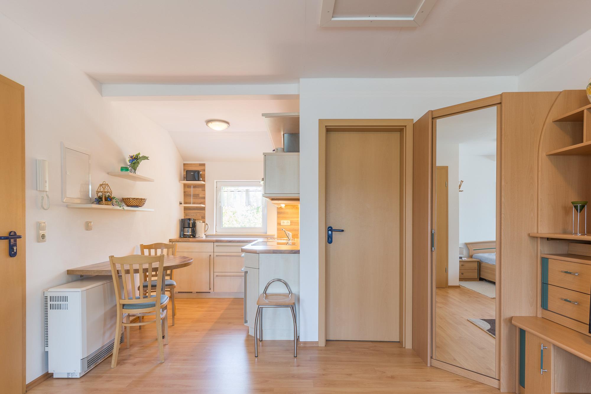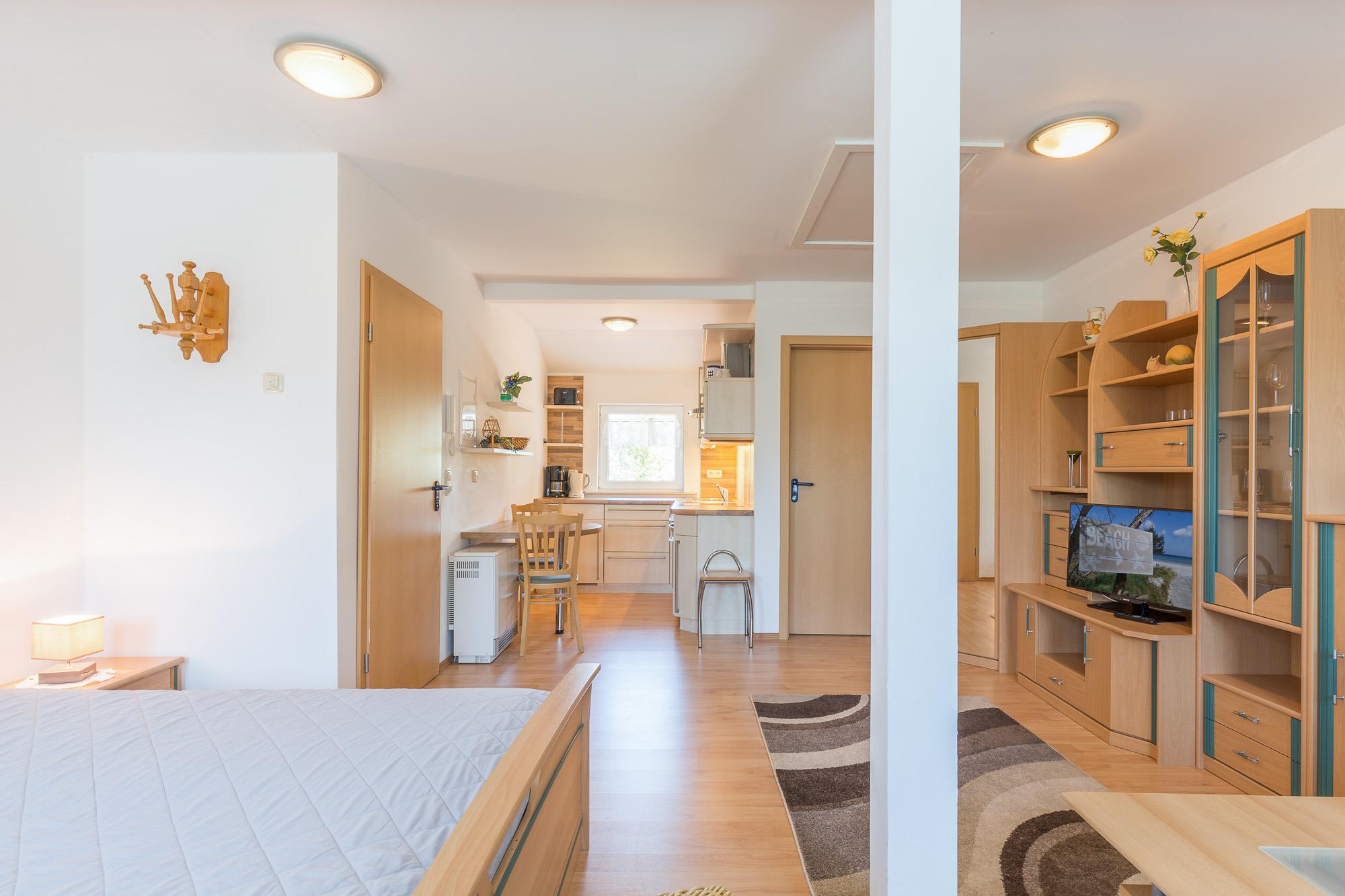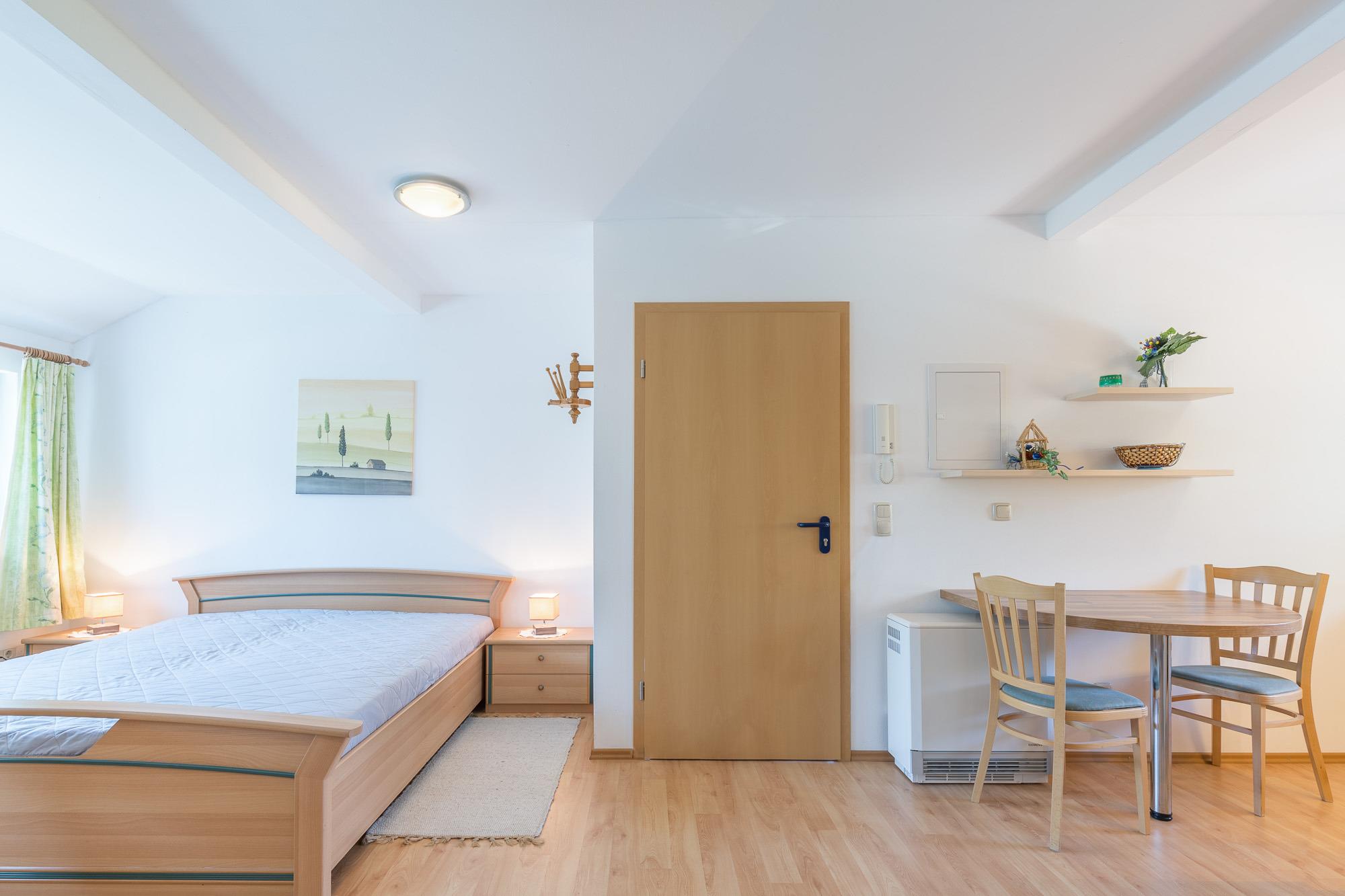 Im ersten Obergeschoss des Ferienhofes Karl´s Ruhe befindet sich ein gemütliches 1-Zimmer-Appartement und bietet Platz für 2 Personen.