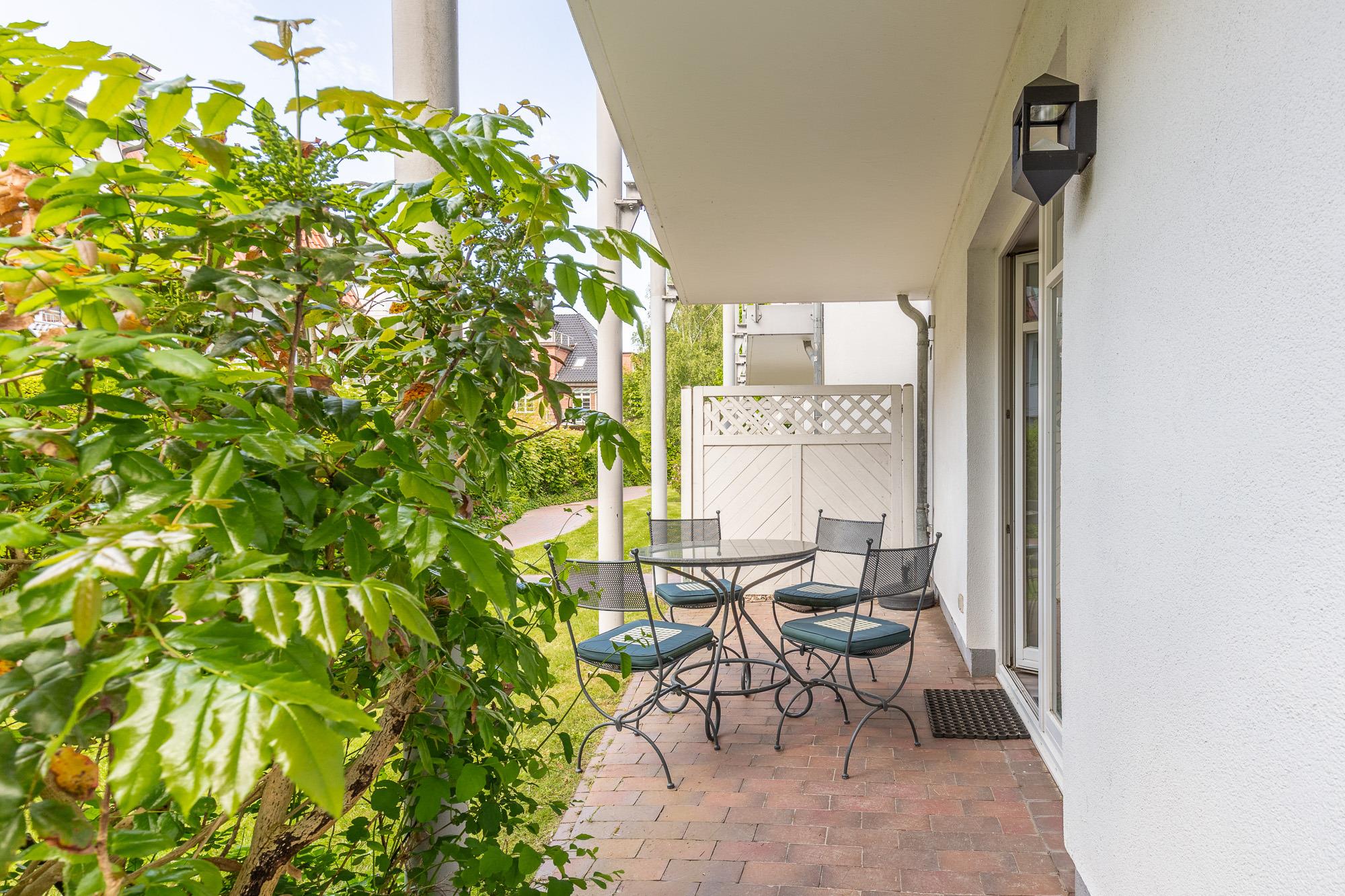 Die Terrasse ist nach Westen ausgelegt. WLAN ist in der Wohnung vorhanden.