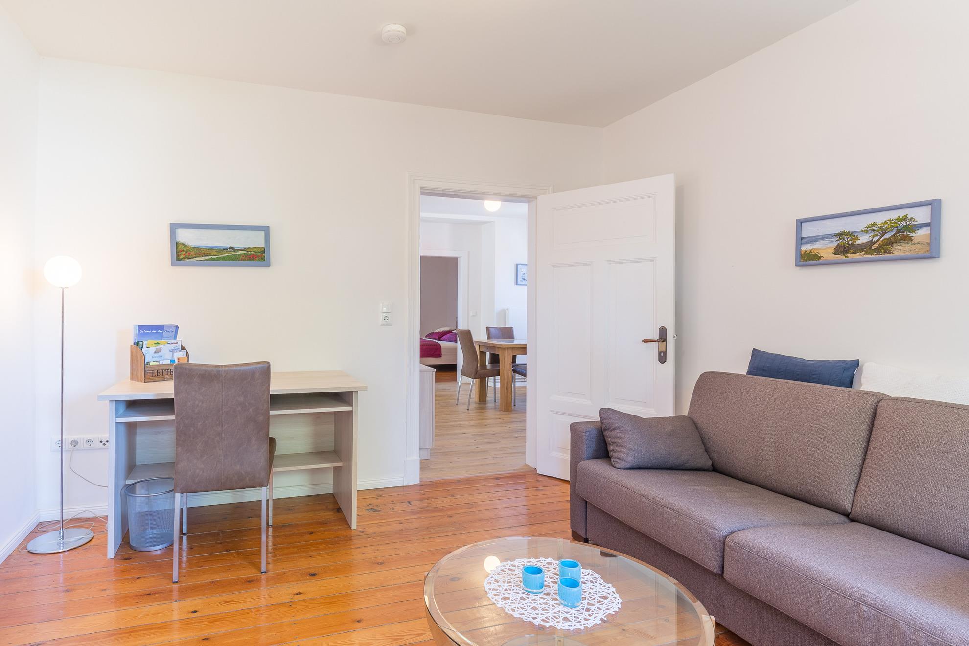 Großzügige 3-Zimmer-Ferienwohnung mit Meerblick, nur 100 m vom Sandstrand in Boltenhagen entfernt.