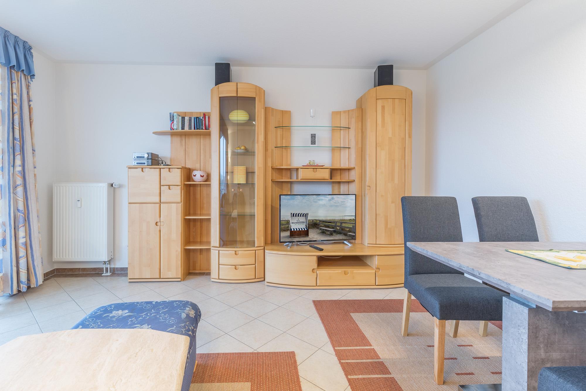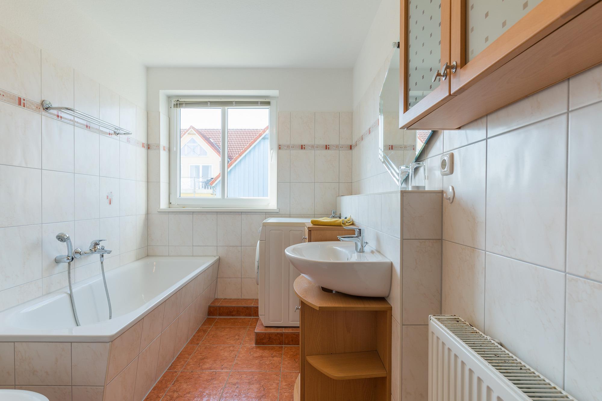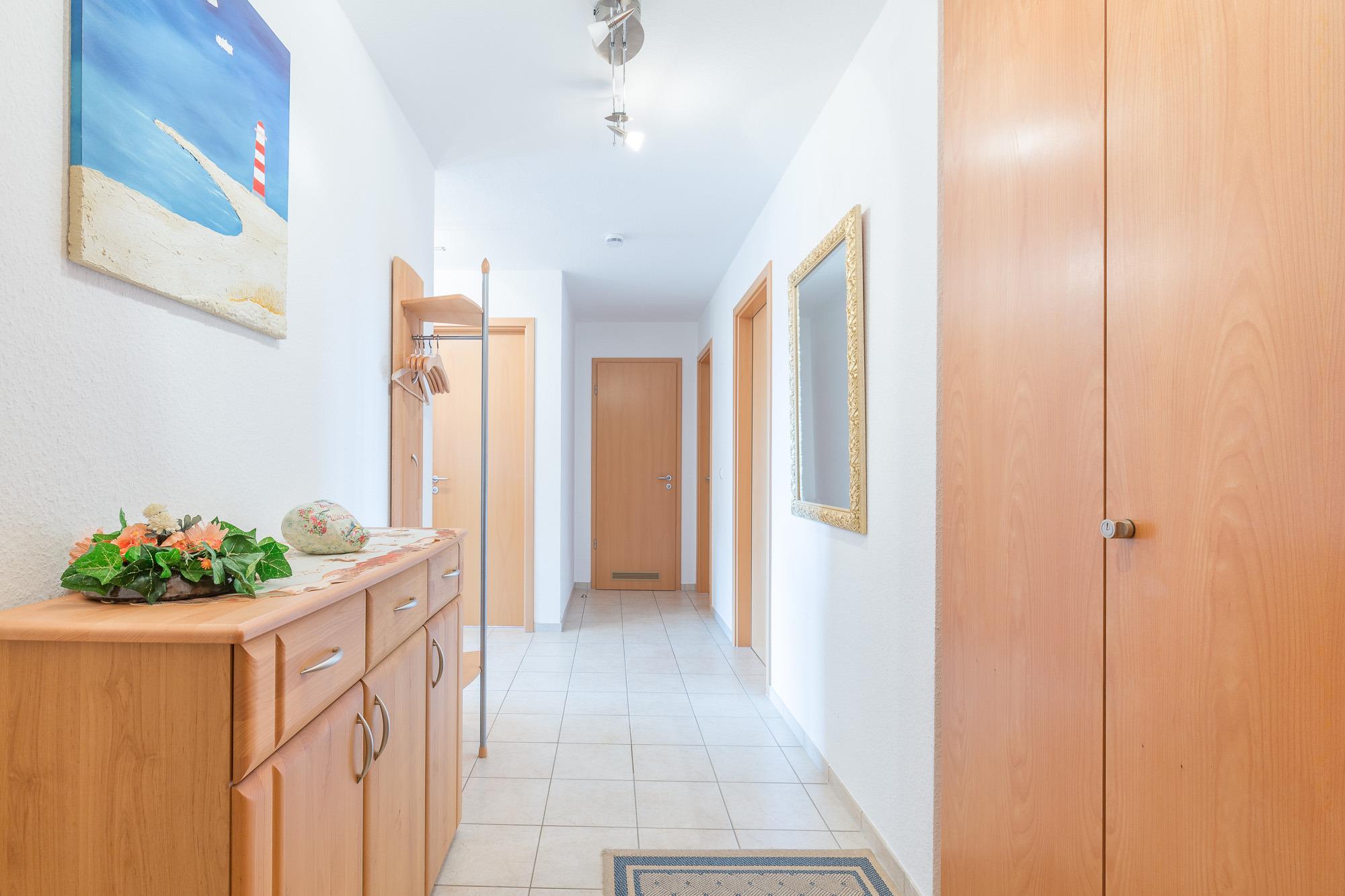 Die 82 m² große 3-Zimmer-Ferienwohnung im 1. Obergeschoss, mit großem Balkon zur Südseite und sie liegt im Ortszentrum von Boltenhagen. Zum feinsandigen Ostseestrand sind es nur 100 Meter. Ein Schlafzimmer mit einem Doppelbett und ein "Kinderzimmer" und das Wohnzimmer mit jeweils einer Schlafcouch bieten Platz für bis zu 6 Personen. Das Wohnzimmer verfügt über einen Esstisch, eine Couchgarnitur und einen Flachbildfernseher. In der voll ausgestatteten Küche finden Sie ein Ceran-Kochfeld, einen Geschirrspüler und einen Kühlschrank mit Gefrierfach. Neben einer Dusche, einer Badewanne und WC ist eine Waschmaschine im Badezimmer vorhanden. Die Ferienwohnung verfügt über ein zweites Gäste-WC. Der zur Südseite ausgerichtete Balkon mit Sitzgelegenheiten und einem Tisch lädt zum Verweilen ein.