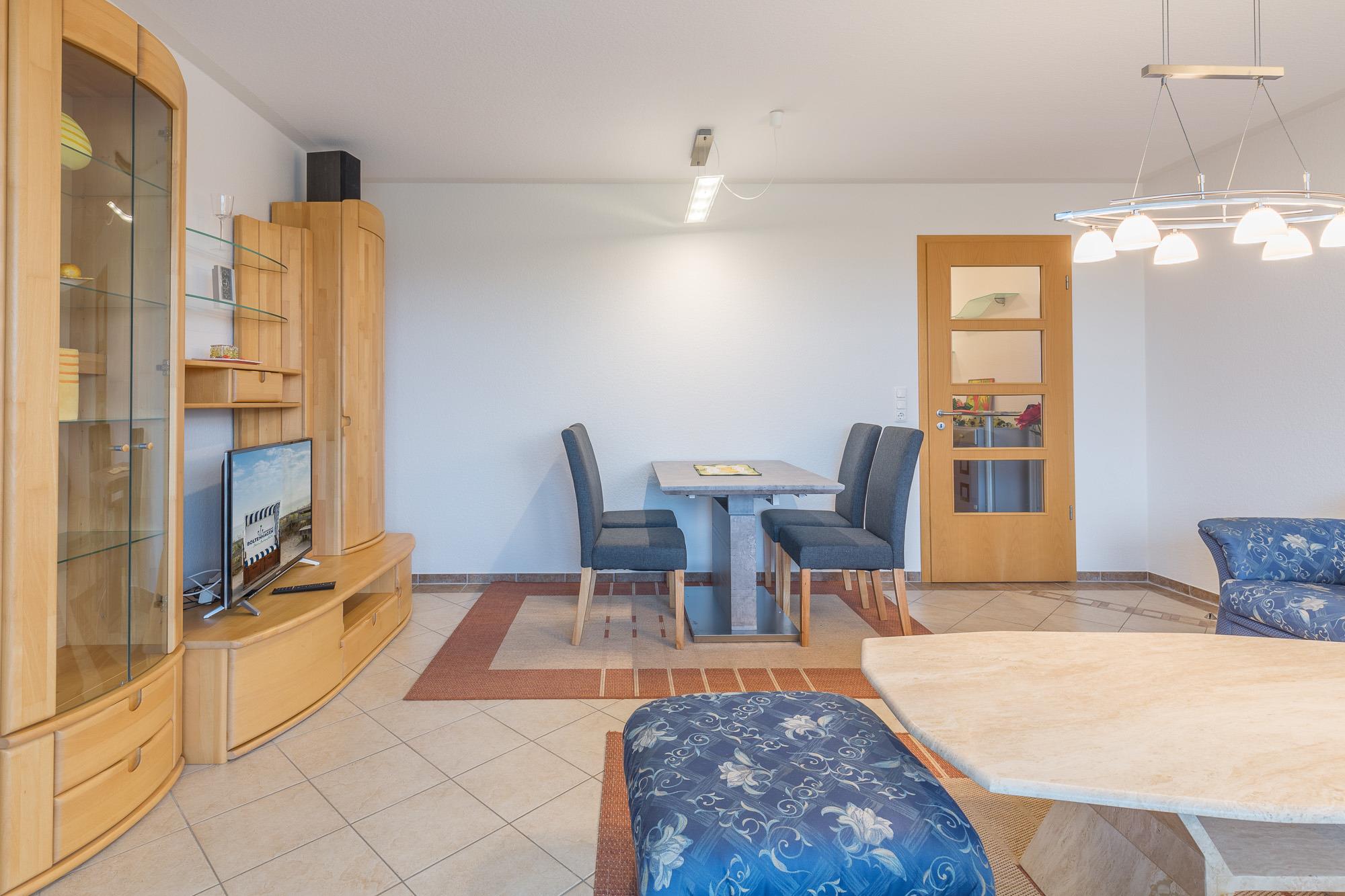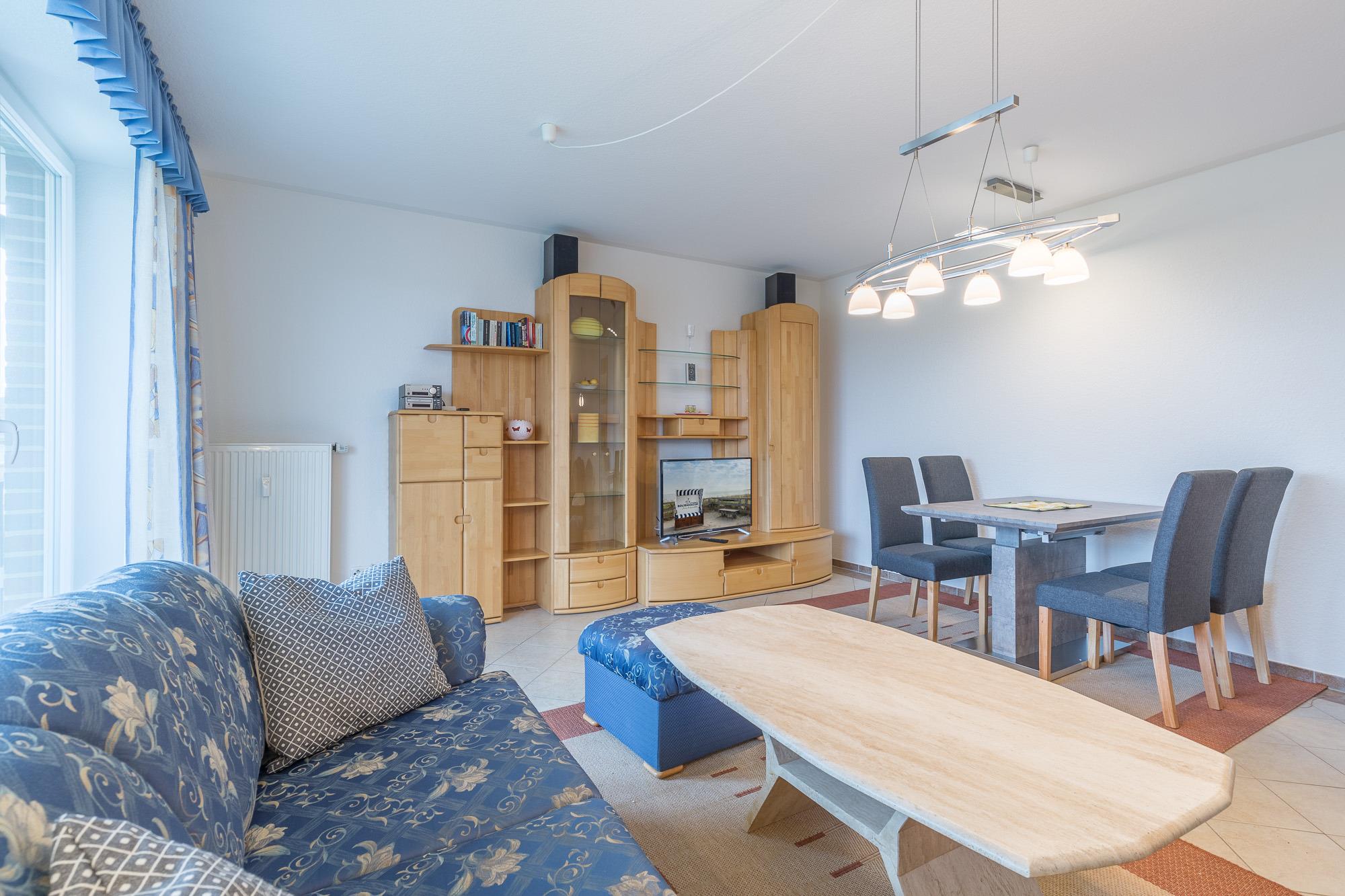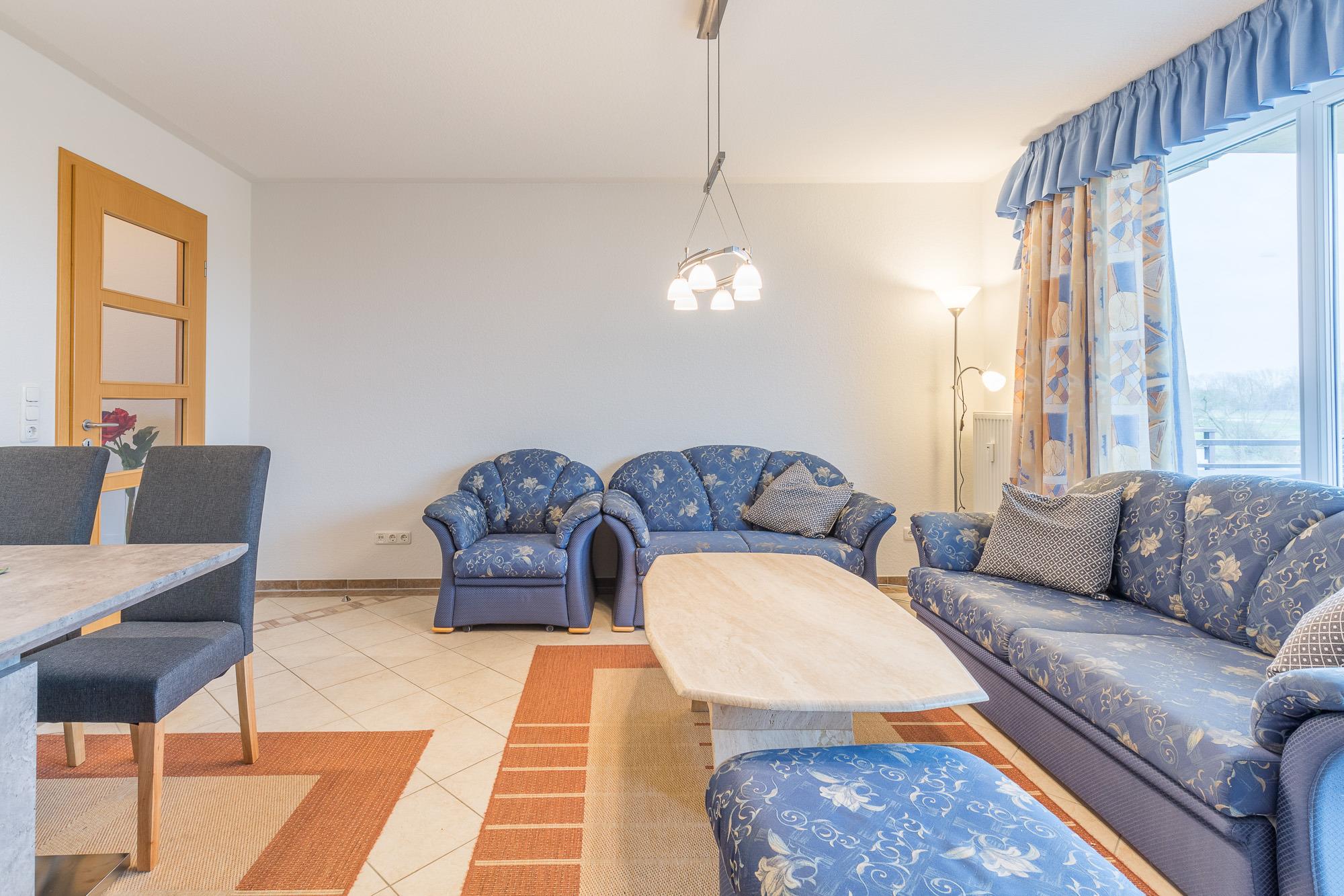 Die 82 m² große 3-Zimmer-Ferienwohnung im 1. Obergeschoss, mit großem Balkon zur Südseite und sie liegt im Ortszentrum von Boltenhagen. Zum feinsandigen Ostseestrand sind es nur 100 Meter. Ein Schlafzimmer mit einem Doppelbett und ein "Kinderzimmer" und das Wohnzimmer mit jeweils einer Schlafcouch bieten Platz für bis zu 6 Personen. Das Wohnzimmer verfügt über einen Esstisch, eine Couchgarnitur und einen Flachbildfernseher. In der voll ausgestatteten Küche finden Sie ein Ceran-Kochfeld, einen Geschirrspüler und einen Kühlschrank mit Gefrierfach. Neben einer Dusche, einer Badewanne und WC ist eine Waschmaschine im Badezimmer vorhanden. Die Ferienwohnung verfügt über ein zweites Gäste-WC. Der zur Südseite ausgerichtete Balkon mit Sitzgelegenheiten und einem Tisch lädt zum Verweilen ein.