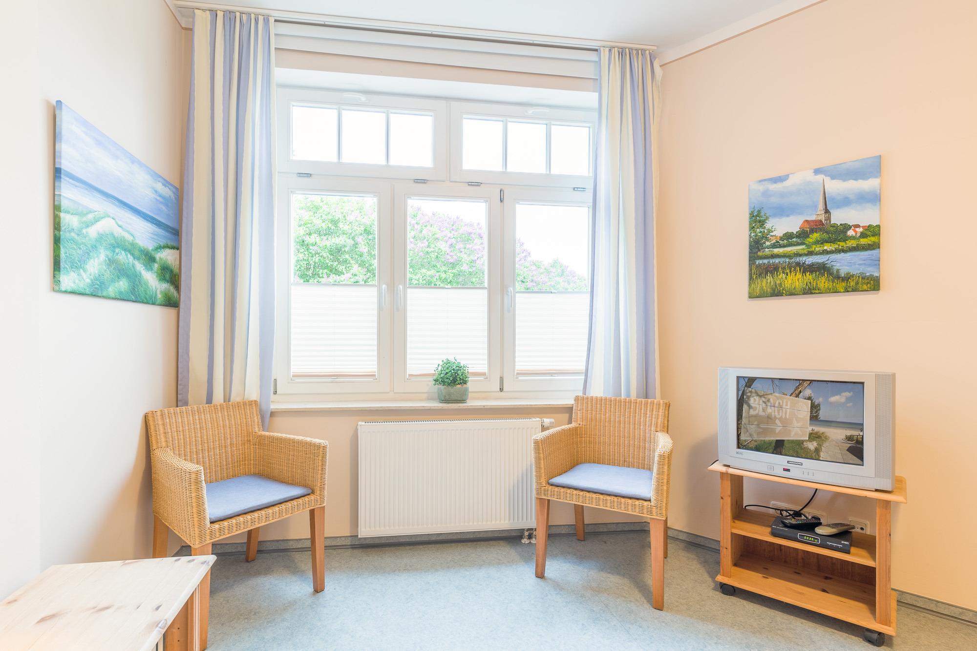 Die Wohnung 3 im Erdgeschoss bietet mit einem großen Wohnzimmer und einem separaten Schlafzimmer Platz für maximal 2 Personen. Sie verfügt über eine offene, komplette Küchenzeile im Wohnzimmer mit Geschirrspülmaschine, Backofen, 4-Platten-Herd und Kühlschrank sowie ein Badezimmer mit Dusche und WC. Den großen Garten mit Grillmöglichkeit können alle Gäste des Hauses gern nutzen. Ihren PKW können Sie auf dem Innenhof abstellen. Zusätzlich stellen wir Ihnen 2 Fahrräder kostenfrei zur Verfügung (Zustand und Verfügbarkeit ohne Rechtsanspruch). Das Mitbringen von Haustieren ist erlaubt. Hier berechnen wir einen Mehraufwand von 10,00 € pro Tag. Nutzung der Waschmaschine möglich.