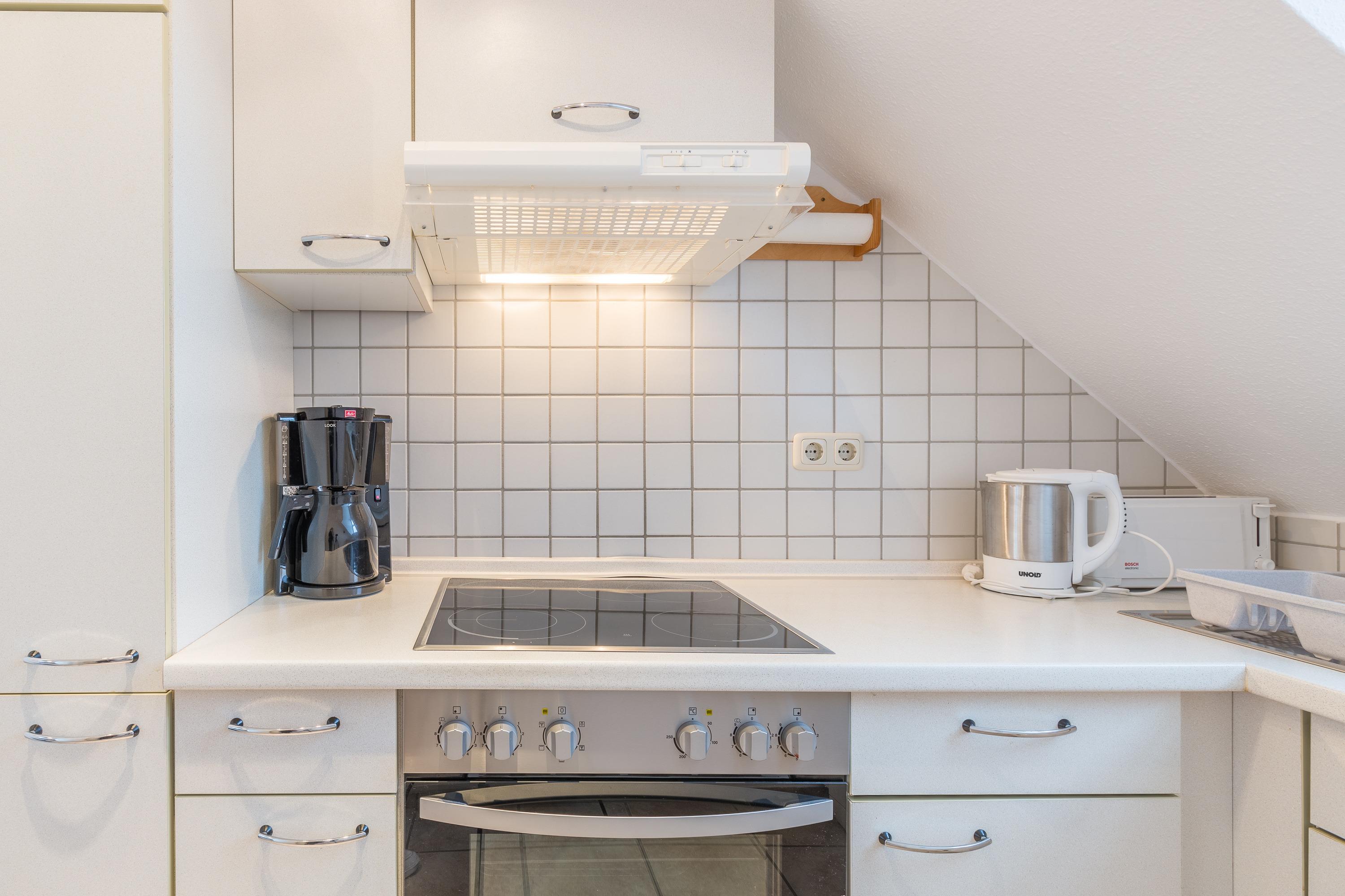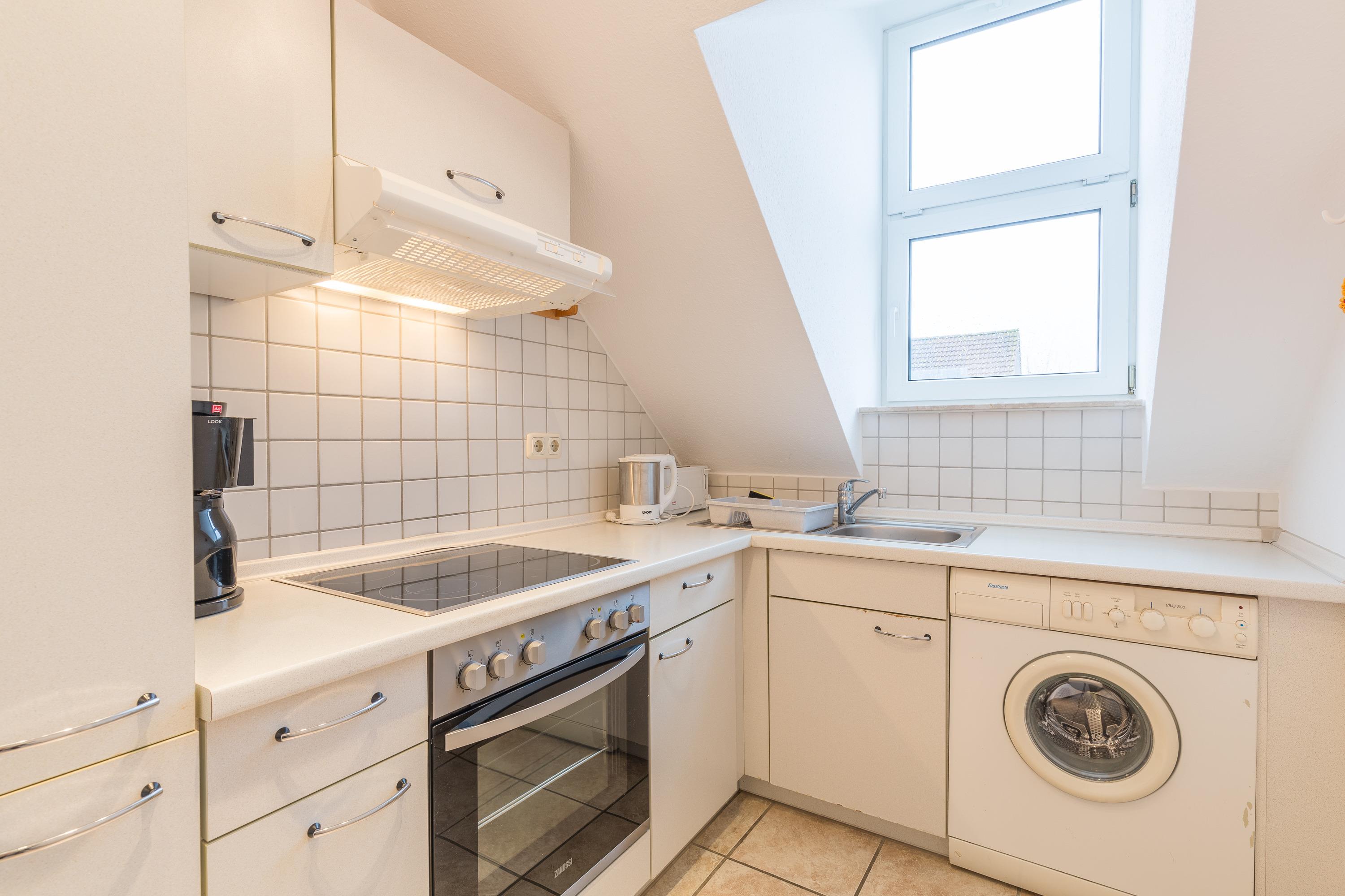 In der voll ausgestatteten Küchenzeile finden Sie einen Backofen mit Cerankochfeld, einen Kühlschrank mit Gefrierfach und eine Waschmaschine (steht in der Küche). Es gibt 2 Schlafzimmer. Eines mit einem Doppelbett (Liegefläche 180 cm x 200 cm) und ein Schlafzimmer mit zwei Einzelbetten. Auf dem Balkon ( Süd-Ostlage) stehen Balkonmöbel für 2 Personen bereit. Ihr Auto stellen Sie auf dem Außenstellplatz ab. Es gehört 1 Stellplatz zur Wohnung. Haustiere sind in dieser Wohnung nicht erlaubt.