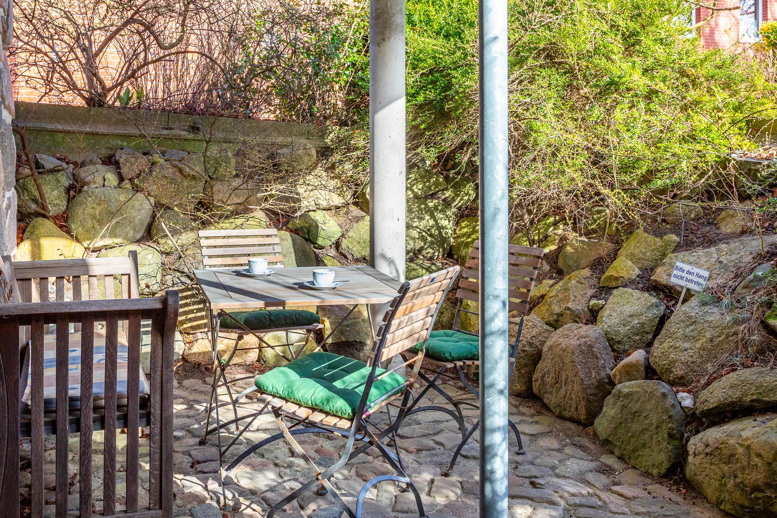 Das Grundstück ist ca. 3.500 m² groß, sodass Familien oder Freundesgruppen auf den großzügigen Grünflächen entspannen, sich zurückziehen und das schöne Wetter sowie den Blick ins Grüne genießen können. Auch für Aktivitäten ist ausreichend Platz: Ob Federball, Fußball oder Volleyball – die weitläufigen Wiesen, insbesondere in Richtung Dünenweg sowie in Westlage hinter der Villa Sonnengarten (die sich auf demselben Grundstück hinter der Villa Seegarten befindet), bieten ideale Voraussetzungen.