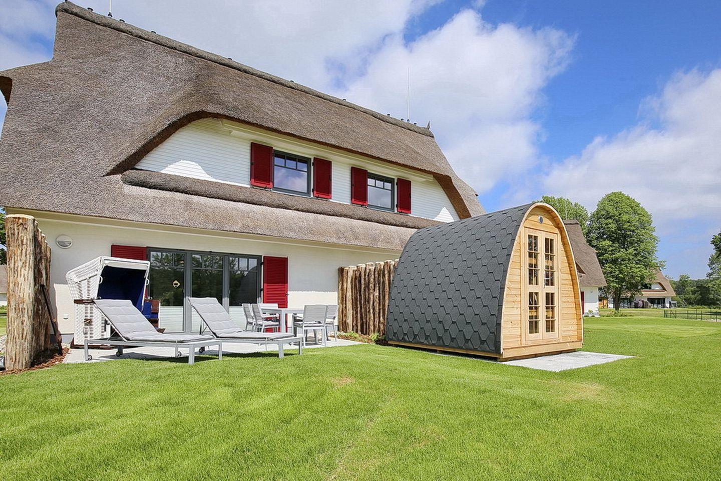 Großzügige Doppelhaushälfte mit Reetdach, Terrasse, Sauna und Strandnähe in Boltenhagen.