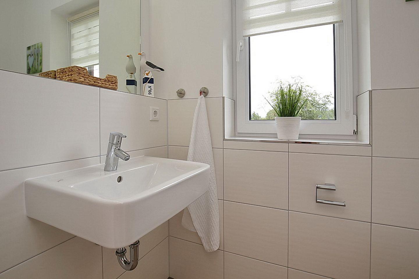 Im Erdgeschoss des Ferienhauses befinden sich der Wohnraum mit Sofas, eine gemütliche Essgruppe mit einem Kinderhochstuhl sowie die integrierte Küche, mit einer Kücheninsel inkl. Geschirrspüler, Backofen, Mikrowelle, 4-Platten-Induktionskochfeld und einem Kühlschrank mit Gefrierfach. Für deine Unterhaltung stehen dir ein Flachbild-TV, ein DVD-/Blu-Ray-Player und eine Stereoanlage zur Verfügung. Auch das Duschbad, der Hauswirtschaftsraum mit Waschmaschine und Trockner sowie der Eingangsbereich sind hier untergebracht.