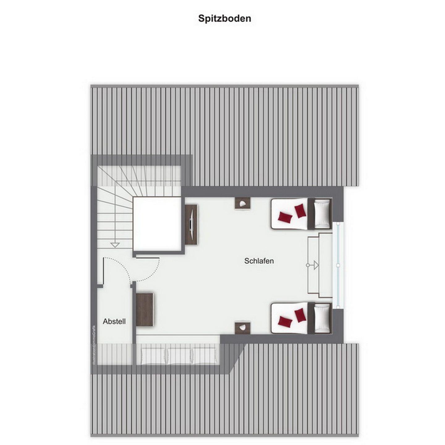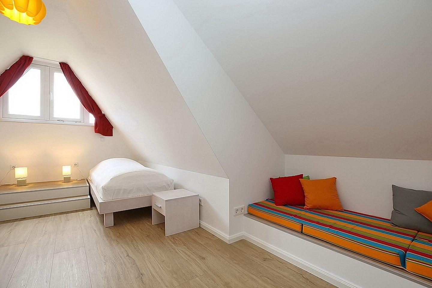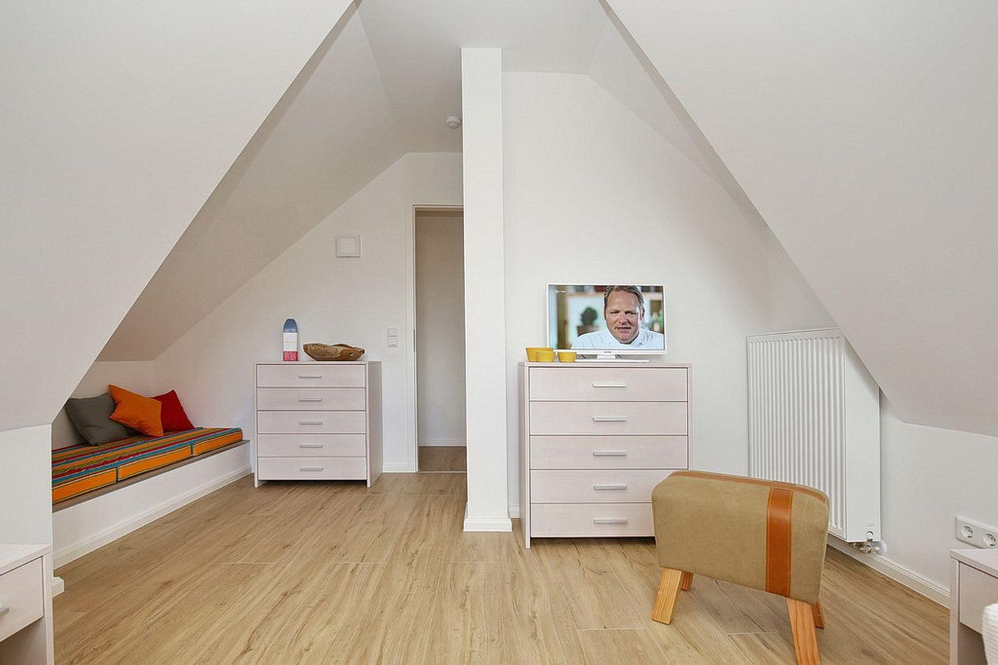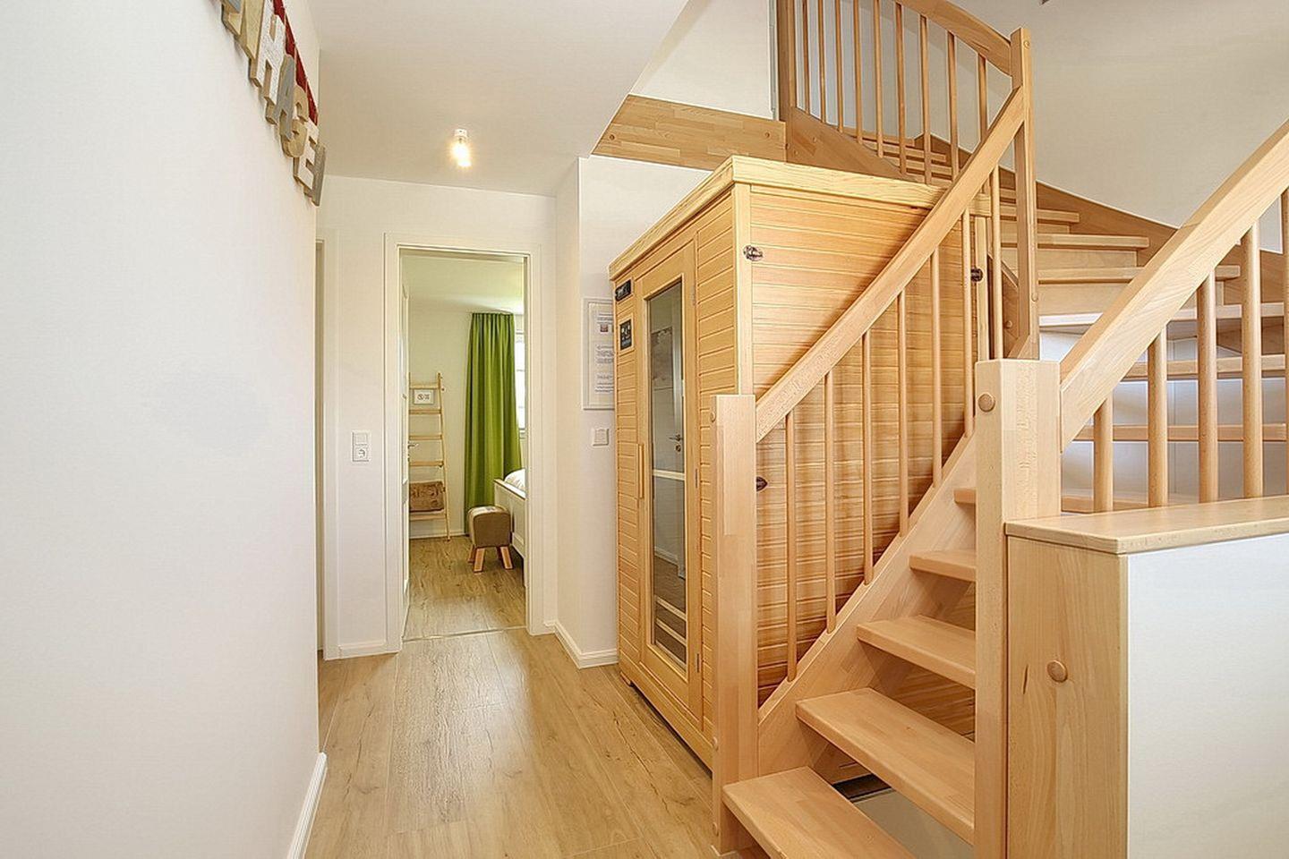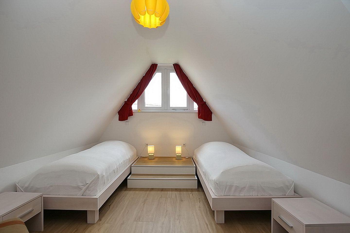 Im Spitzboden befindet sich ein weiteres Schlafzimmer mit zwei Einzelbetten (90 x 200 cm). In diesem Nichtraucherhaus sind Haustiere nicht erlaubt. Ein Kinderbett und ein Kinderhochstuhl sind inklusive. Die Besonderheiten in dem Ferienhaus sind die kleine Infrarotkabine, der Bollerwagen (ohne Gewähr) und der Strandkorb, der sich auf der Terrasse befindet. W-Lan (ohne Gewähr) Anschluss ist vorhanden.