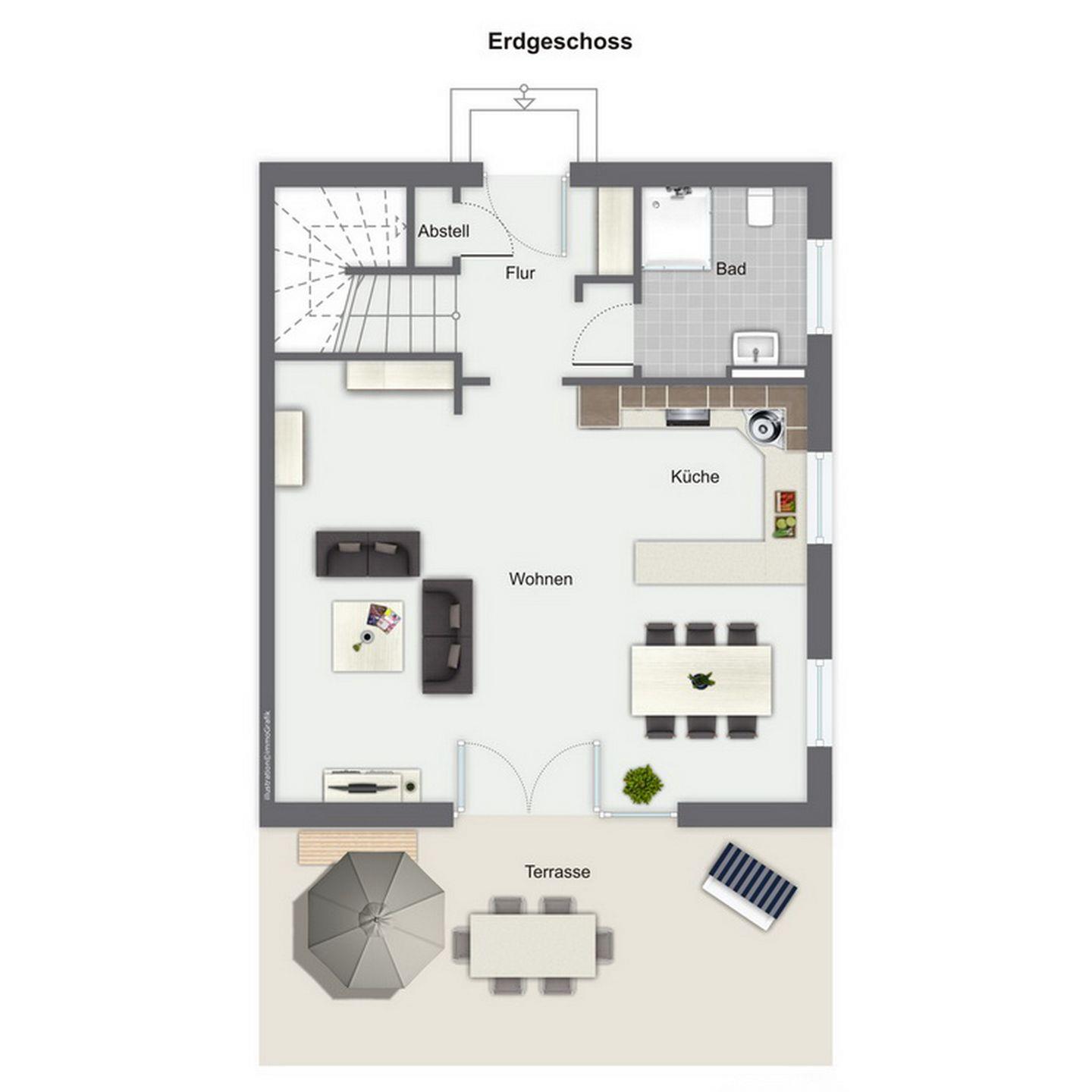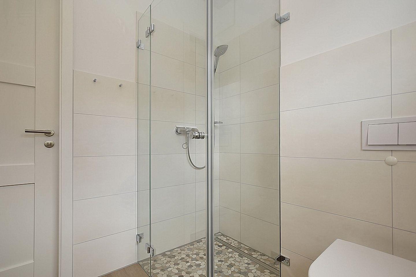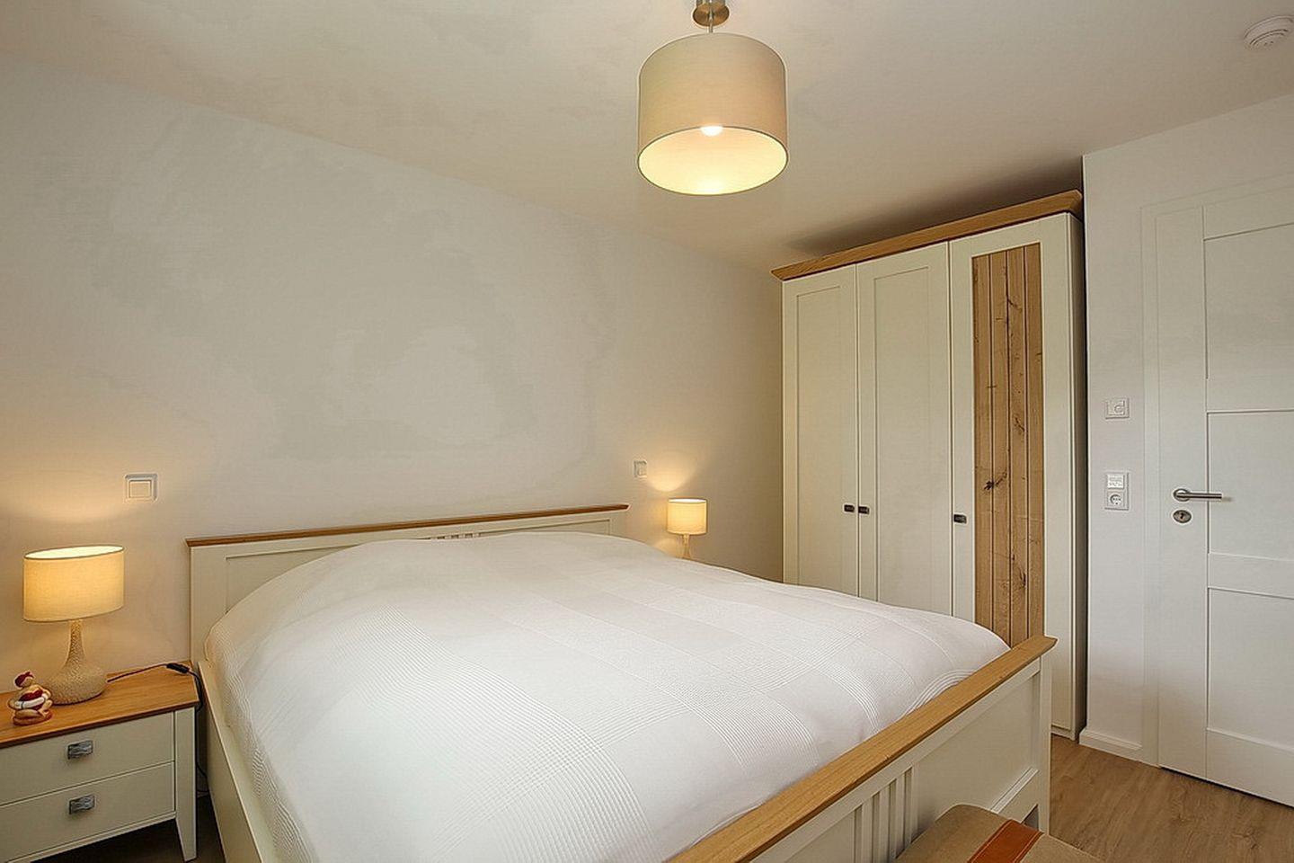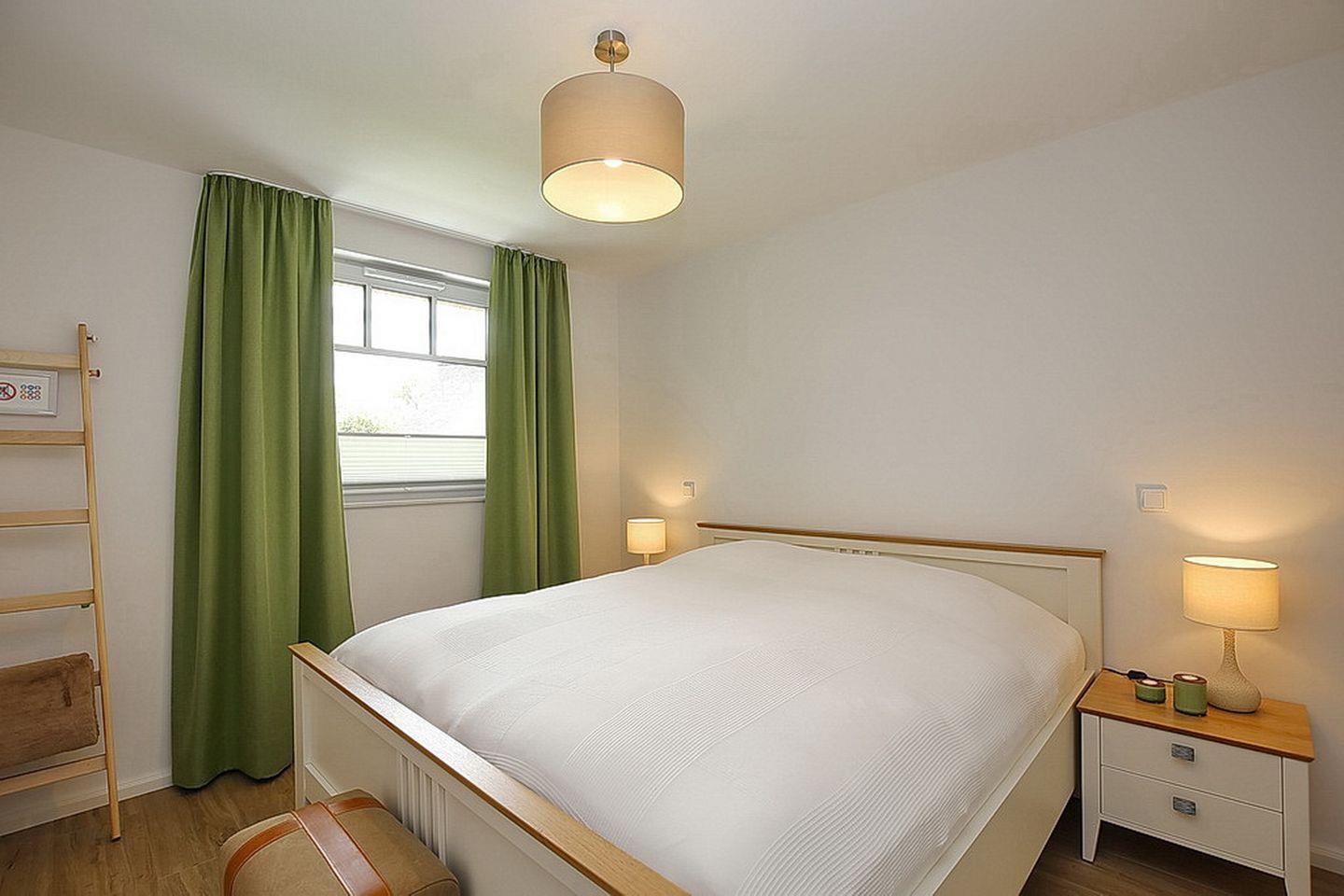 Im Obergeschoss bewohnst du zwei Schlafzimmer. Zur Einrichtung des ersten Schlafzimmers gehört ein Doppelbett mit zwei einzelnen Matratzen (2x90 x 200 cm). Im zweiten Schlafbereich befinden sich zwei Einzelbetten (90 x 200 cm). Weiter verfügt das Obergeschoß über einen Hauswirtschaftsraum und eine Waschmaschine. Die komfortablen Bäder sind mit ebenerdiger Dusche ausgestattet. Das Badezimmer im Obergeschoss lädt zusätzlich mit Badewanne zum Entspannen ein.