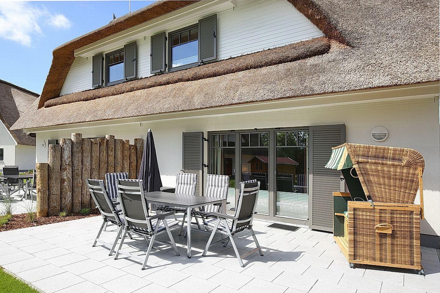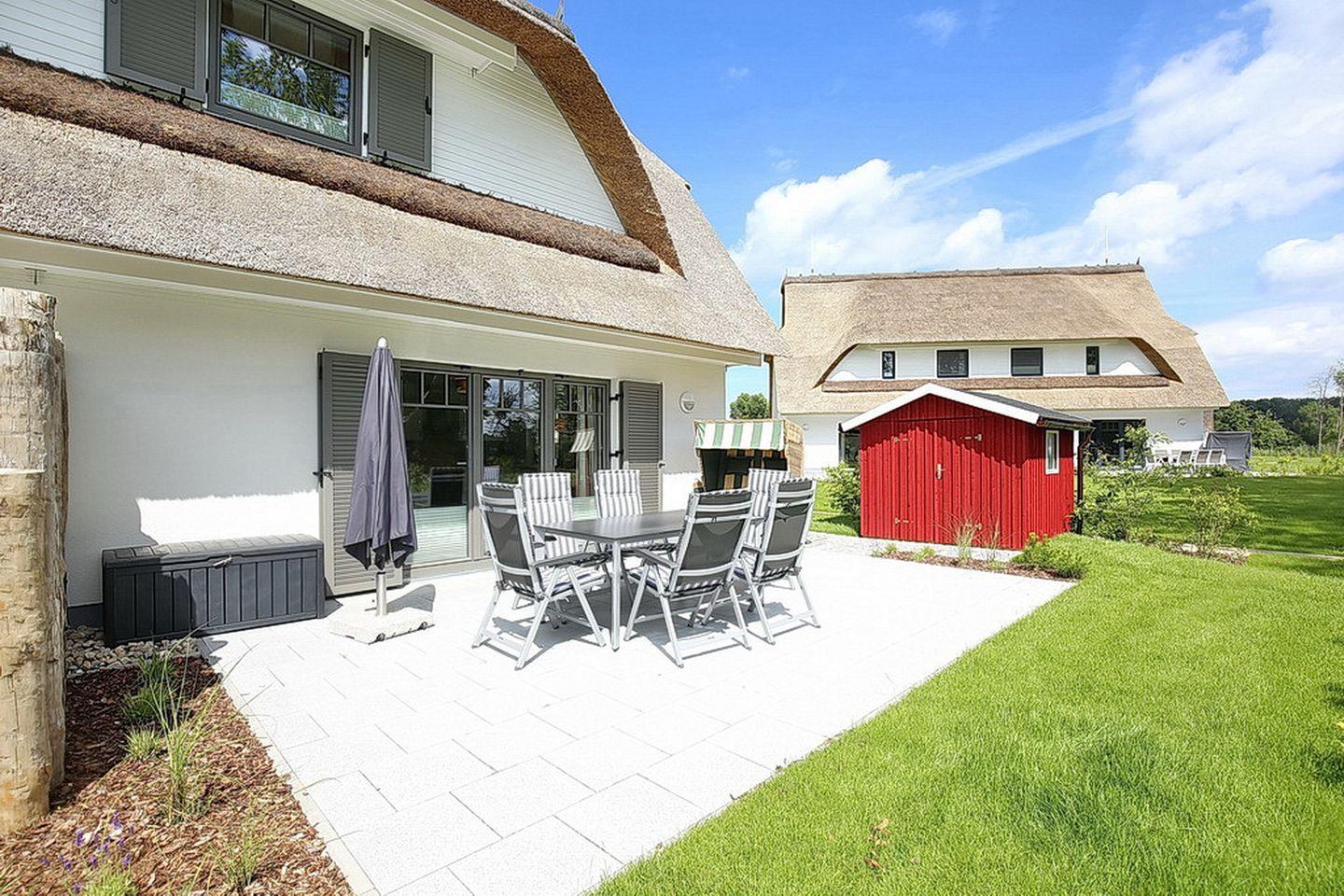 Großzügige Doppelhaushälfte mit Reetdach und Terrasse, nur 400 m vom Strand in Boltenhagen entfernt.