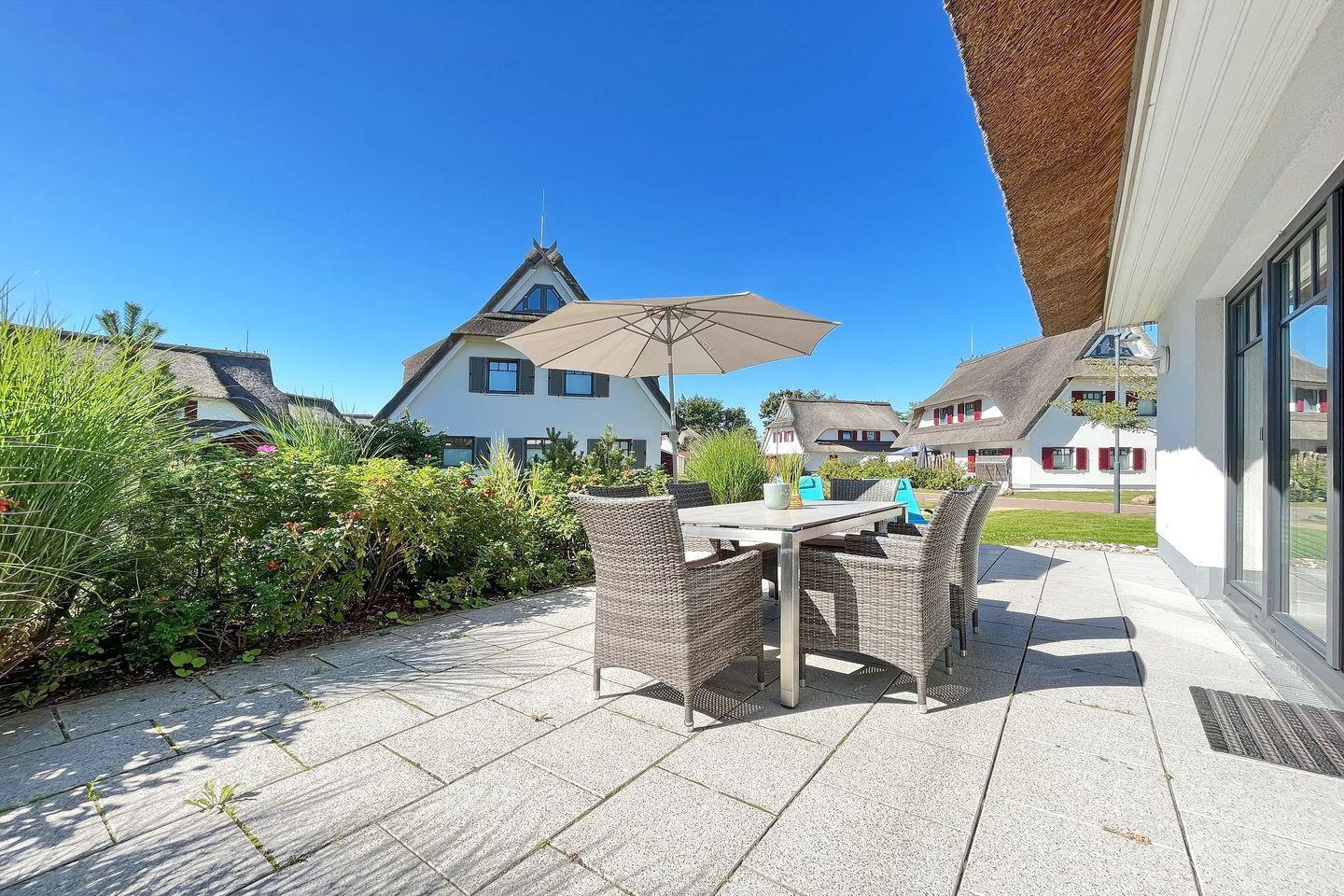 Gemütliche Reetdach-Doppelhaushälfte in Boltenhagen, nur 400 m vom Strand entfernt, mit Sauna und großer Terrasse in Süd-West-Lage.