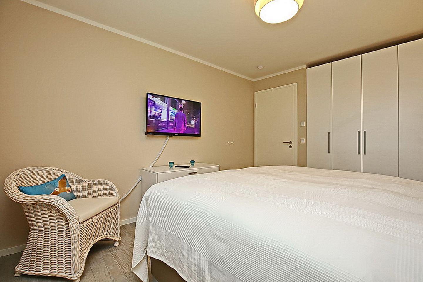 In den zwei Schlafzimmern im Dachgeschoss stehen dir Boxspringbetten (1 x 180 x 200 cm) und Schränke mit ausreichend Platz für deine Urlaubsgarderobe zur Verfügung. Des Weiteren verfügt das Dachgeschoss über ein Bad mit Badewanne und den Flur. Im Spitzboden befindet sich ein weiteres Schlafzimmer mit zwei Einzelbetten (90 x 200 cm).