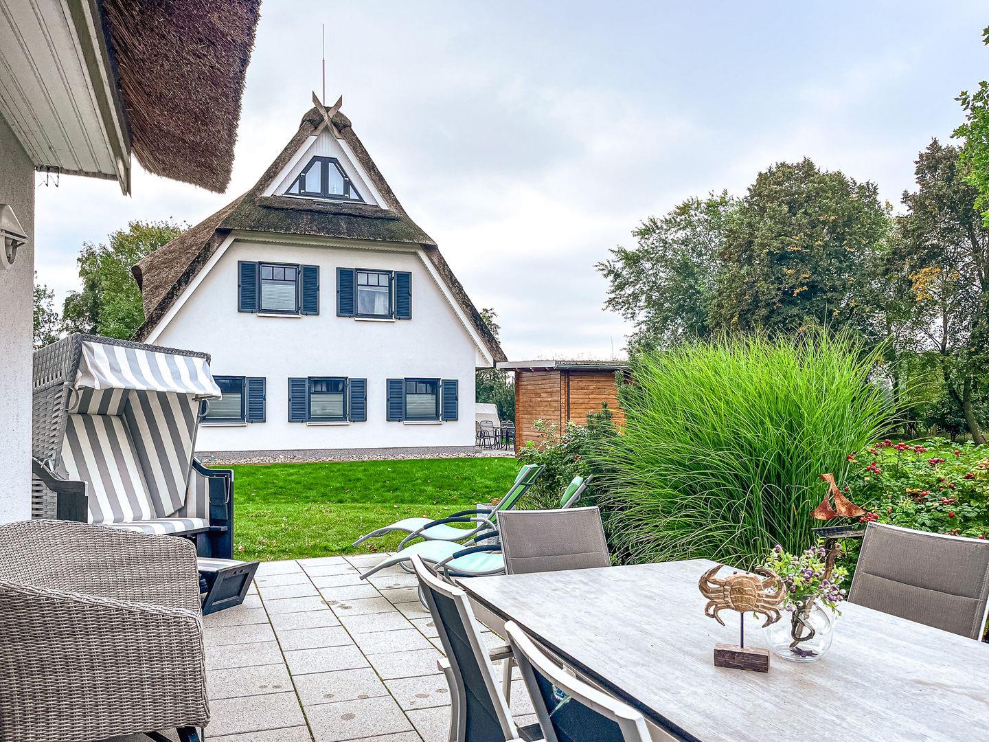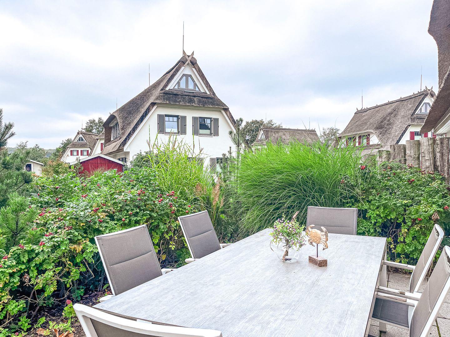 Strandnahes Reethaus in Boltenhagen mit Terrasse, Sauna und moderner Ausstattung für erholsame Urlaubstage.