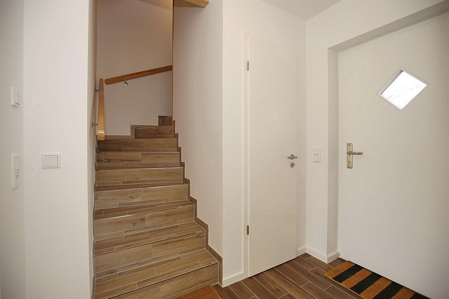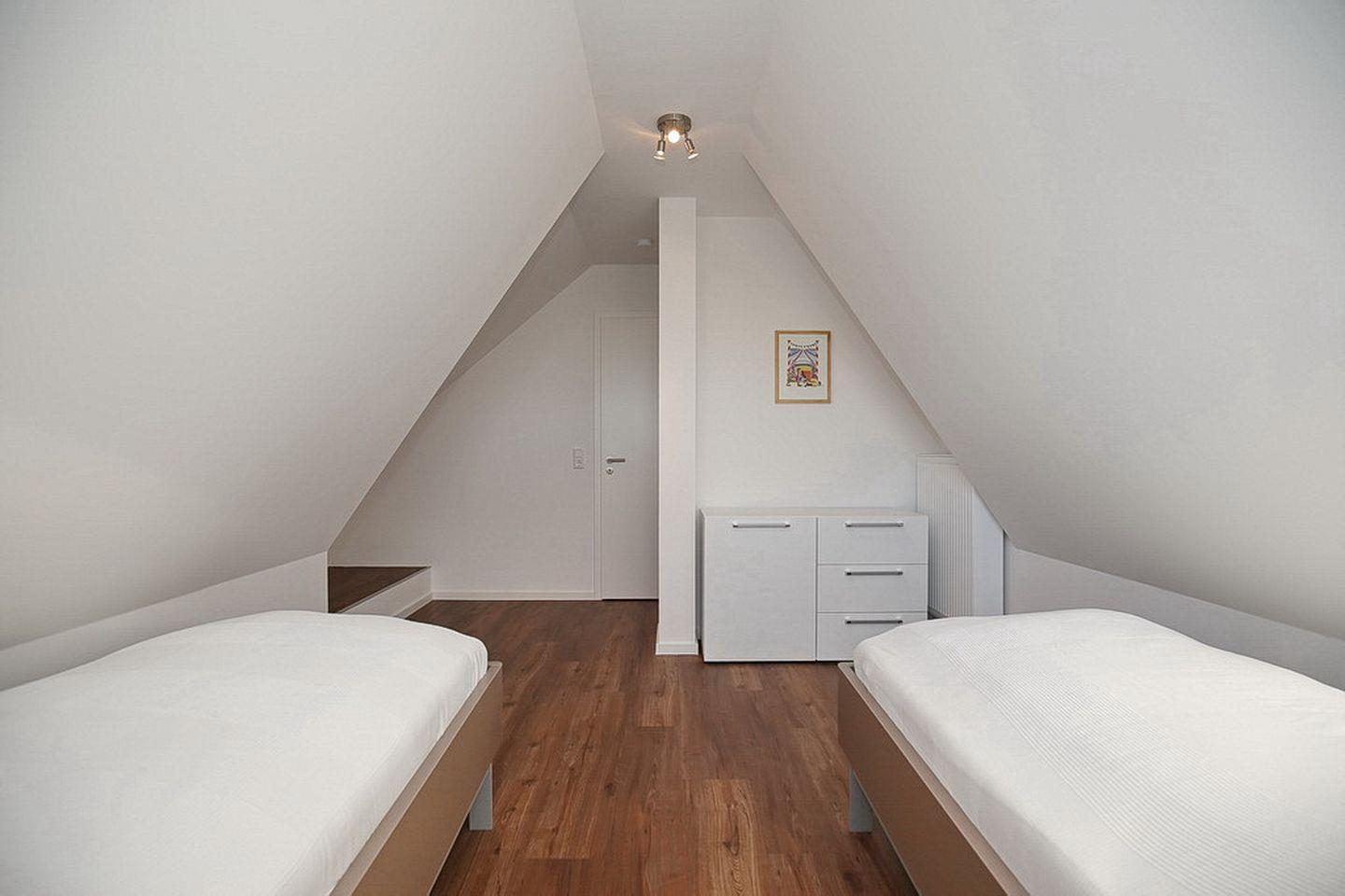 In den zwei Schlafzimmern im Obergeschoss stehen dir ein Doppelbett (2 x 90 x 200 cm) und zwei Einzelbetten (90 x 200 cm) sowie Schränke mit ausreichend Platz für deine Urlaubsgarderobe zur Verfügung. In einem der beiden Schlafzimmer gibt es einen weiteren großen Flachbild-TV. Des Weiteren verfügt das Obergeschoss über ein modernes Bad mit Badewanne sowie den Flur mit Abstellfläche.
