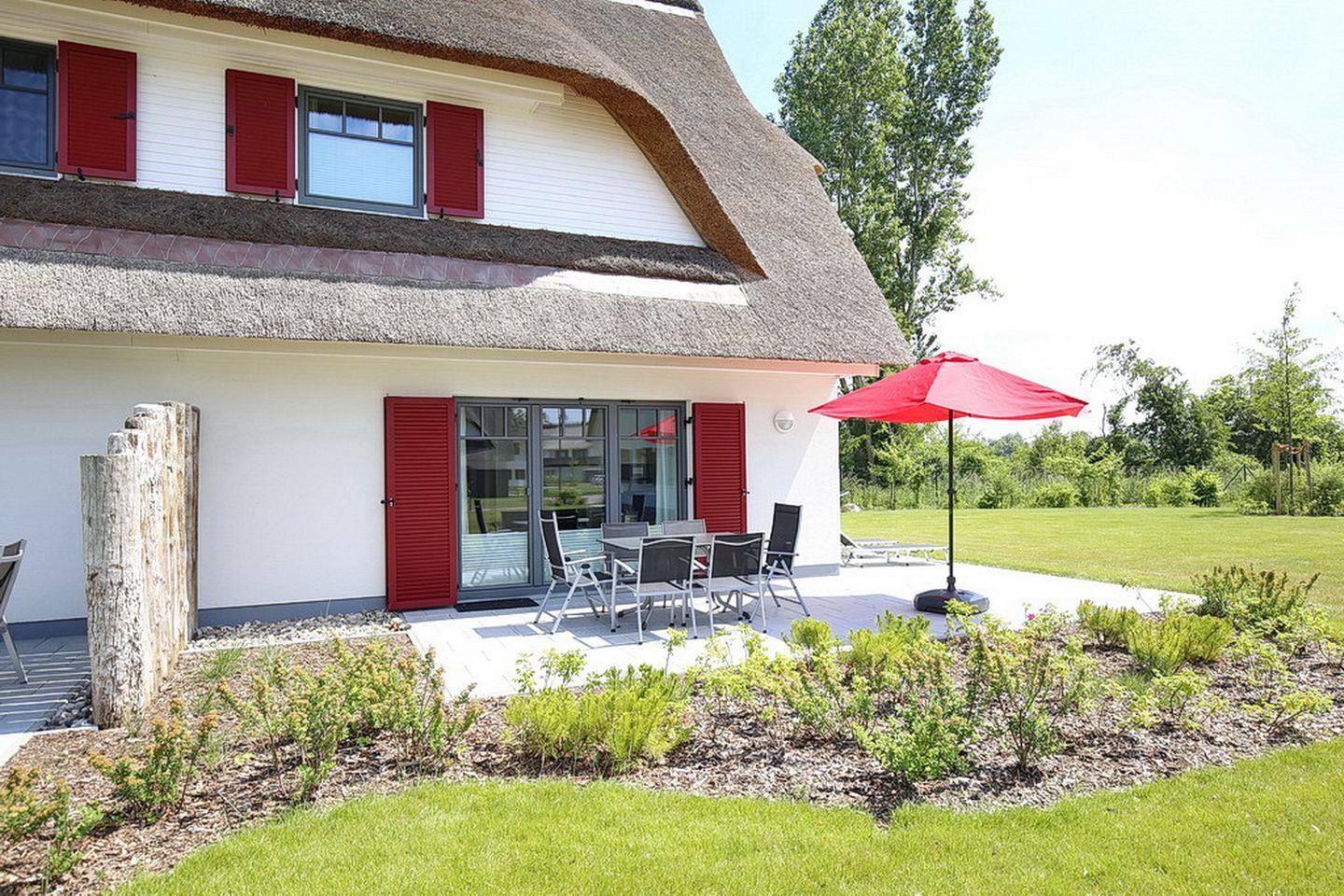 Modernes Reethaus nahe Strand in Boltenhagen mit Terrasse und Sauna für erholsamen Urlaub.