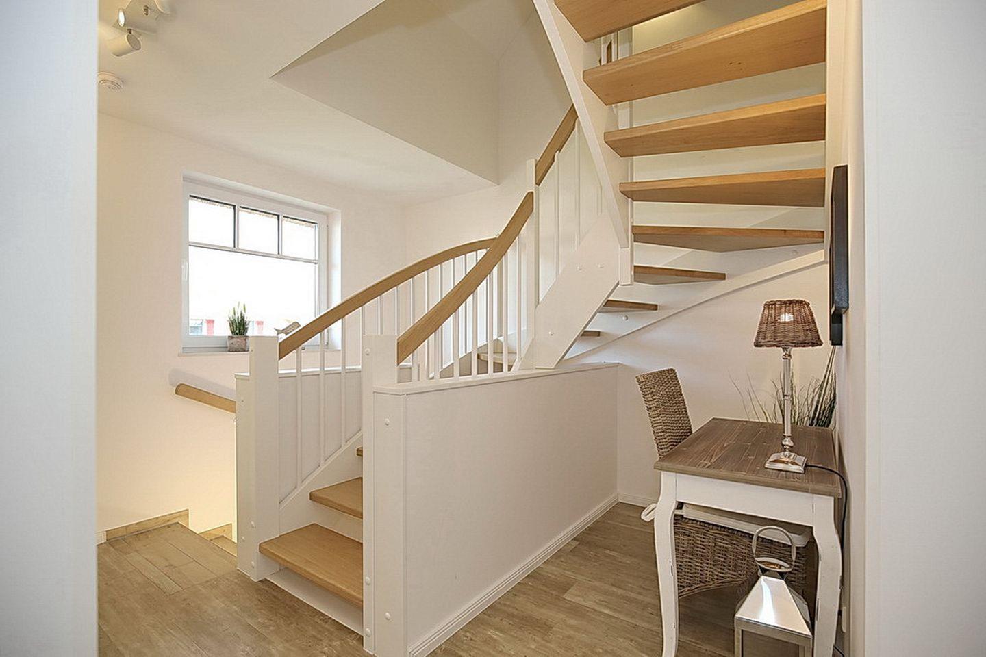 Die Badezimmer im Erd- und Obergeschoss sind mit einer ebenerdigen Dusche ausgestattet. Das gesamte Ferienhaus ist im Sylter Landhausstil eingerichtet und mit Fliesen sowie Design-Belag ausgelegt. In dieser Nichtraucherwohnung sind Haustiere nicht erlaubt. Ein ein Kinderreisebett mit Matratze und ein Kindertreppenstuhl sind inklusive. Ein WLAN-Anschluss (ohne Gewähr) ist vorhanden.