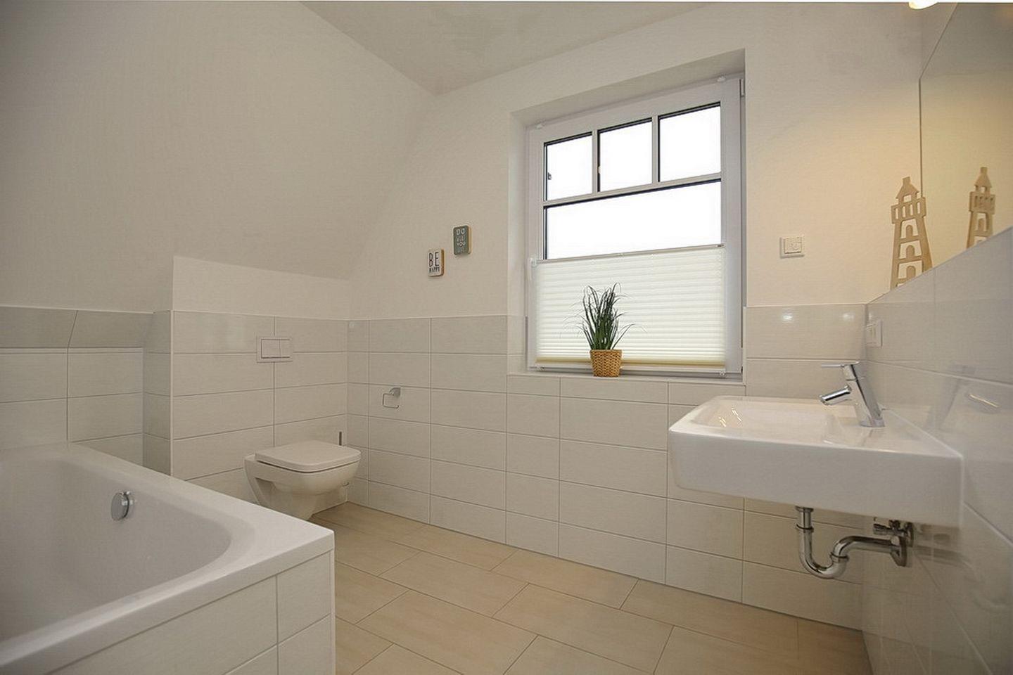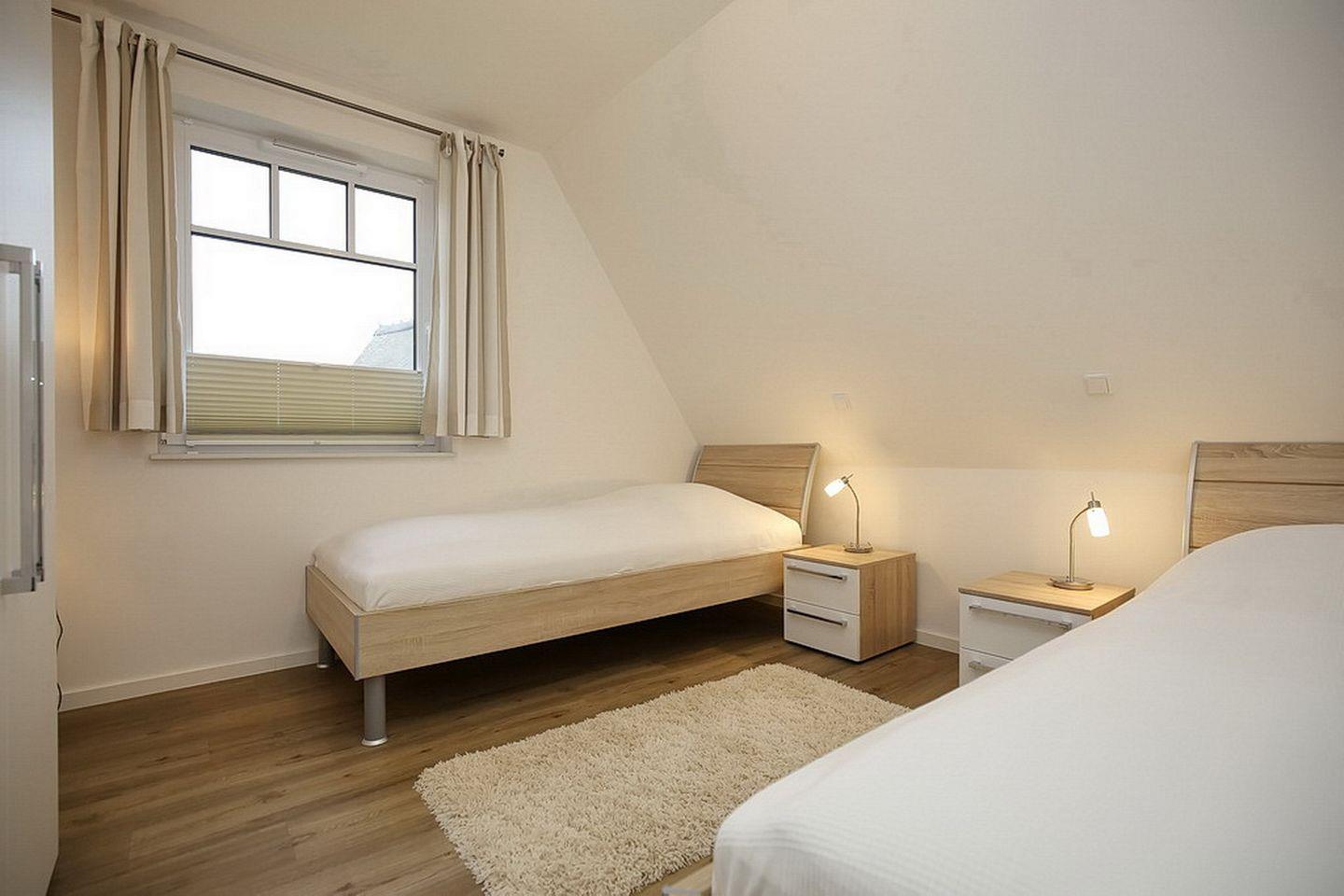 In den zwei Schlafzimmern im Obergeschoss stehen dir ein Boxspringbett mit durchgehender Matratze (180 x 200 cm), zwei Einzelbetten (90 x 200 cm) und Schränke mit ausreichend Platz für deine Urlaubsgarderobe zur Verfügung. Außerdem zu deiner Unterhaltung ein Fernseher. Des Weiteren verfügt das Obergeschoss über ein Bad mit Badewanne und Waschbecken und WC.