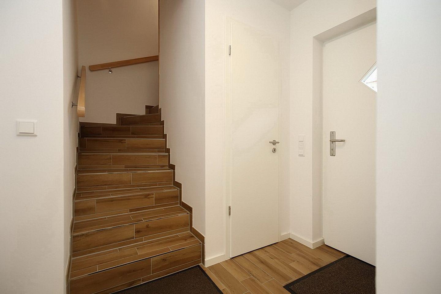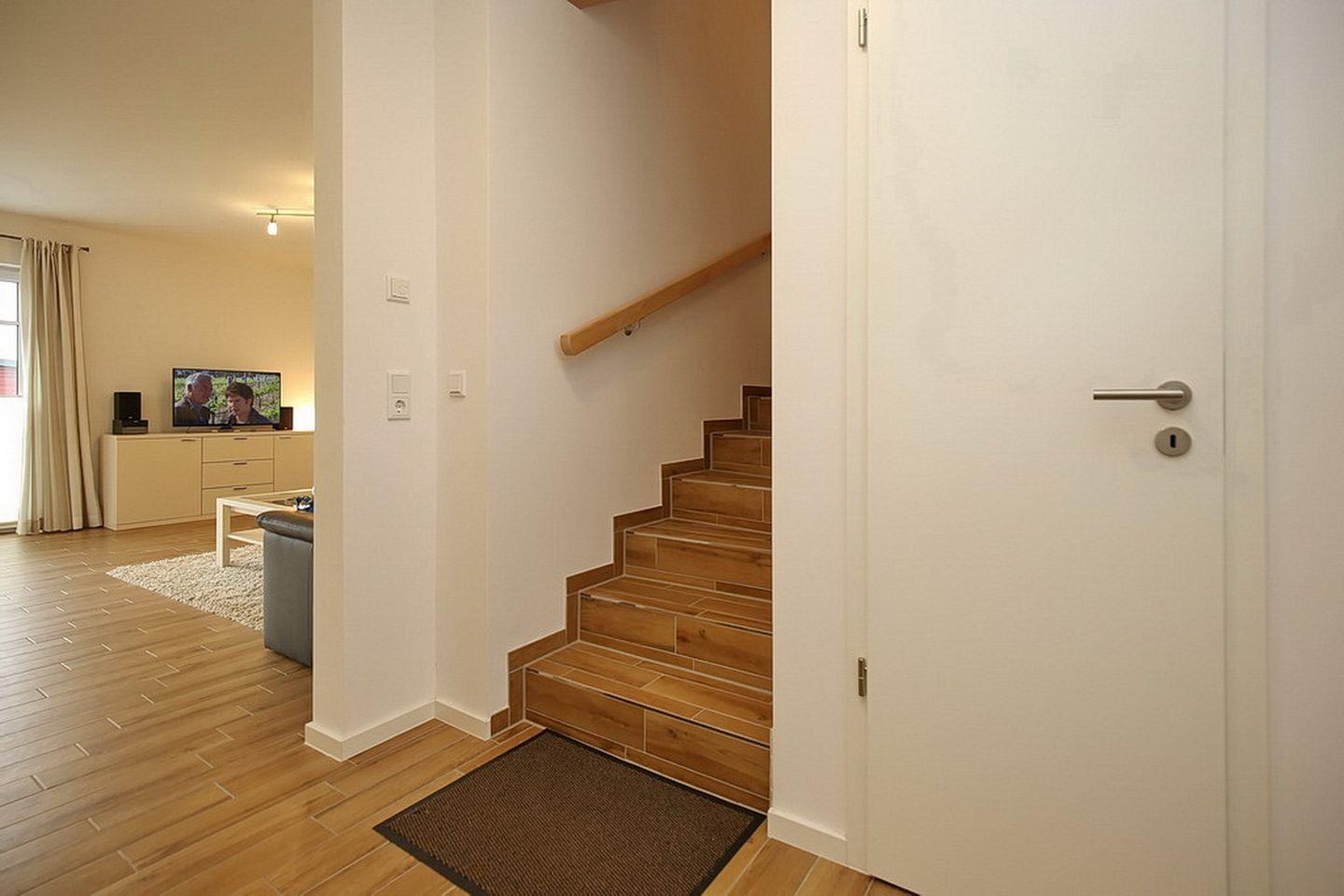 Auch das Gäste-WC mit Dusche sowie der Eingangsbereich befinden sich im Erdgeschoss.