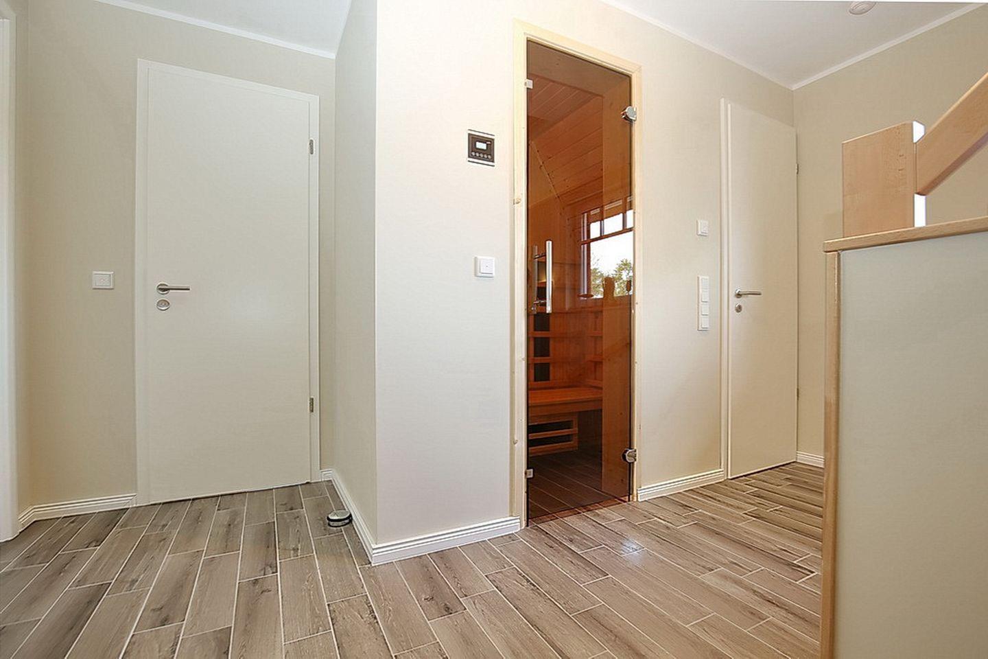 Gemütliche Doppelhaushälfte in Boltenhagen, nur 400 m vom Strand entfernt, mit Terrasse, Sauna und WLAN.