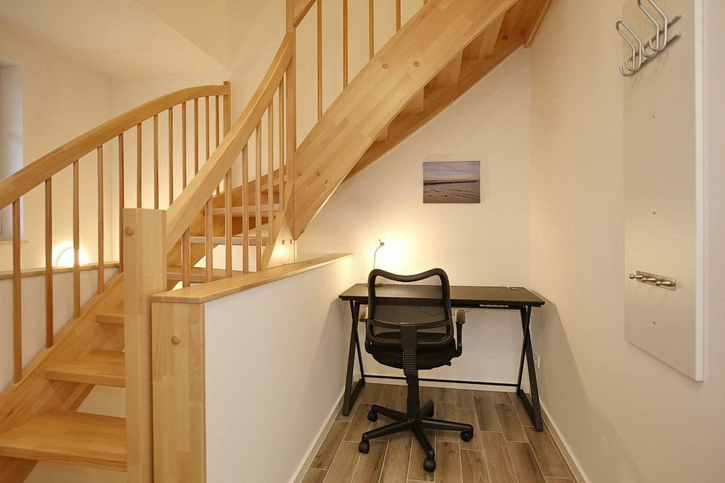 Im Erdgeschoss des Ferienhauses befinden sich der Wohnraum, eine gemütliche Essgruppe sowie die integrierte Küchenzeile. Auch das Duschbad sowie der Eingangsbereich befinden sich hier.