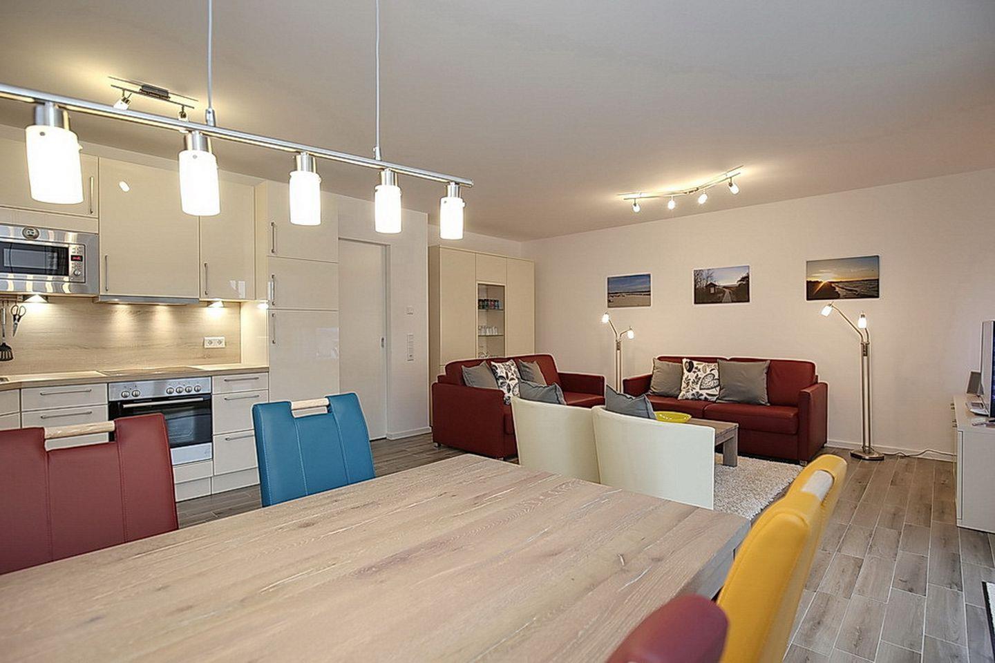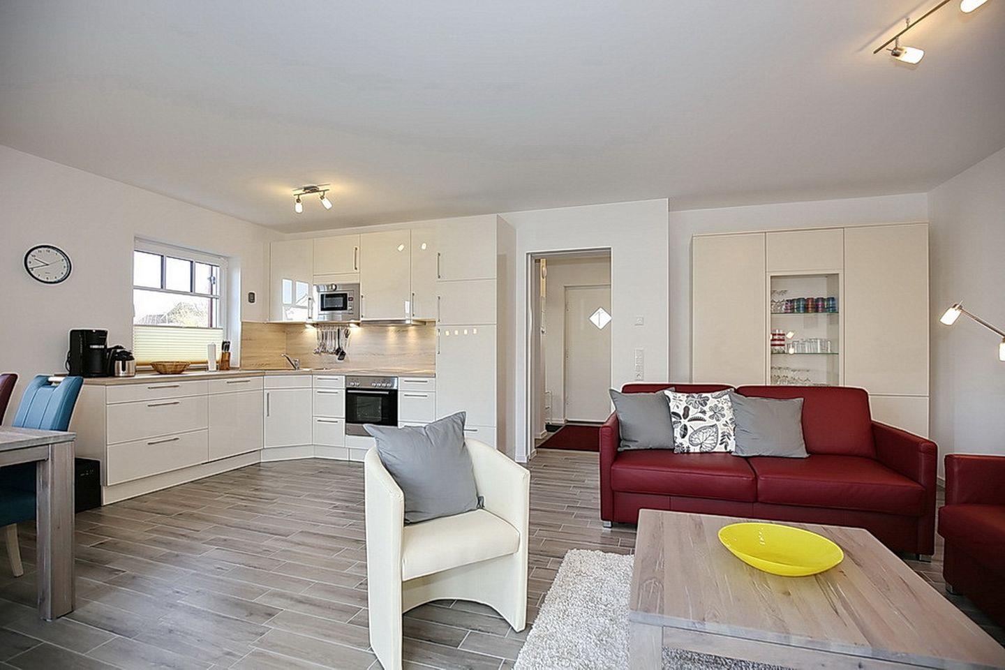 Der Zugang zur großzügigen, mit einem zusätzlichen Strandkorb möblierten West-Terrasse erfolgt direkt vom Wohnzimmer aus. Die Morgensonne kannst du auf dem gepflasterten Freisitz hinter dem Haus (Eingangsbereich) mit Sitzgelegenheiten genießen. In der hochwertig eingerichteten Küchenzeile findest du einen Geschirrspüler, eine Mikrowelle, ein 4- Platten- Cerankochfeld und Backofen, einen Kühlschrank mit Gefrierfach, eine Kaffeemaschine und vieles mehr vor.
