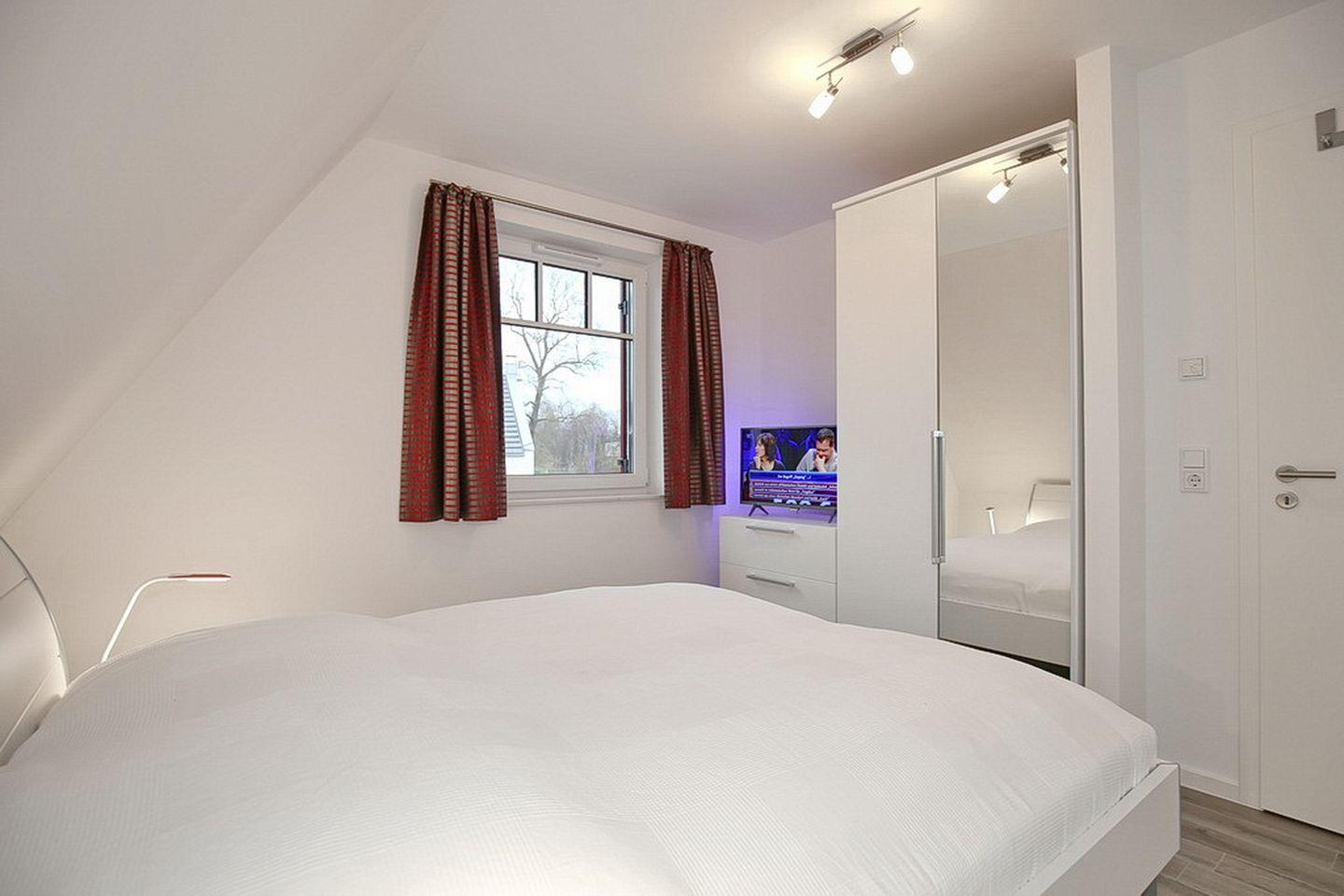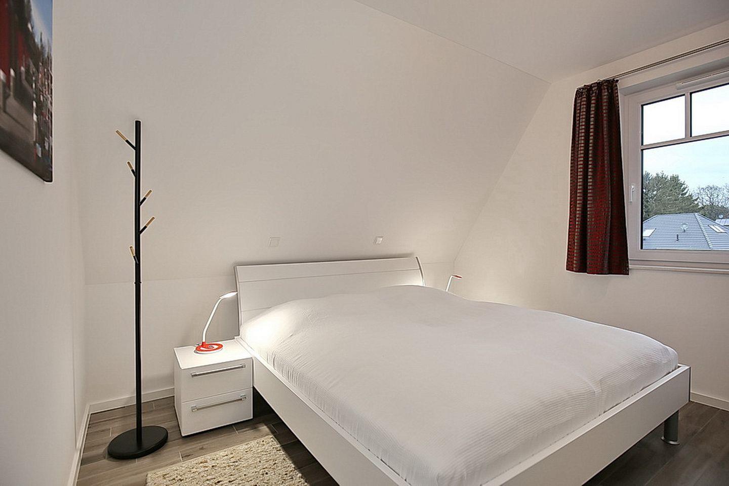 Im Spitzboden befindet sich ein weiteres Schlafzimmer mit zwei Einzelbetten (90 x 200 cm). Das Schlafzimmer ist u.a. mit einem Fernseher ausgestattet. In dieser Nichtraucher-Wohnung sind Haustiere nicht erlaubt. Ein integrierter Waschtrockner und ein Elektrogrill sind vorhanden, ebenso ein Kinderreisebett und ein Kinderhochstuhl für unsere kleinen Gäste. Ein Bollerwagen (ohne Gewähr) kann genutzt werden. Ein Fahrradständer befindet sich direkt vor dem Haus. WLAN (ohne Gewähr) steht dir kostenlos zur Verfügung. Das Ferienhaus verfügt im Wohnzimmer und den Schlafzimmern im 1. Obergeschoss über einen Insektenschutz.