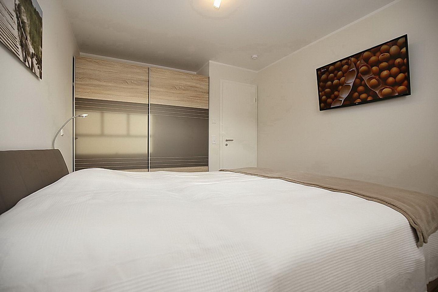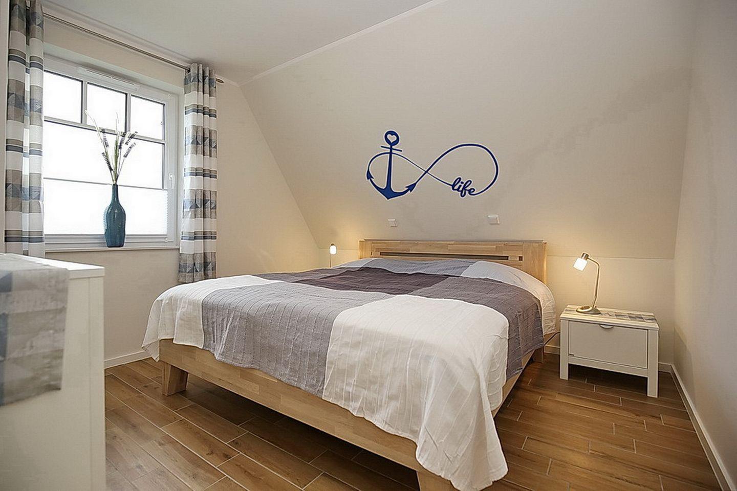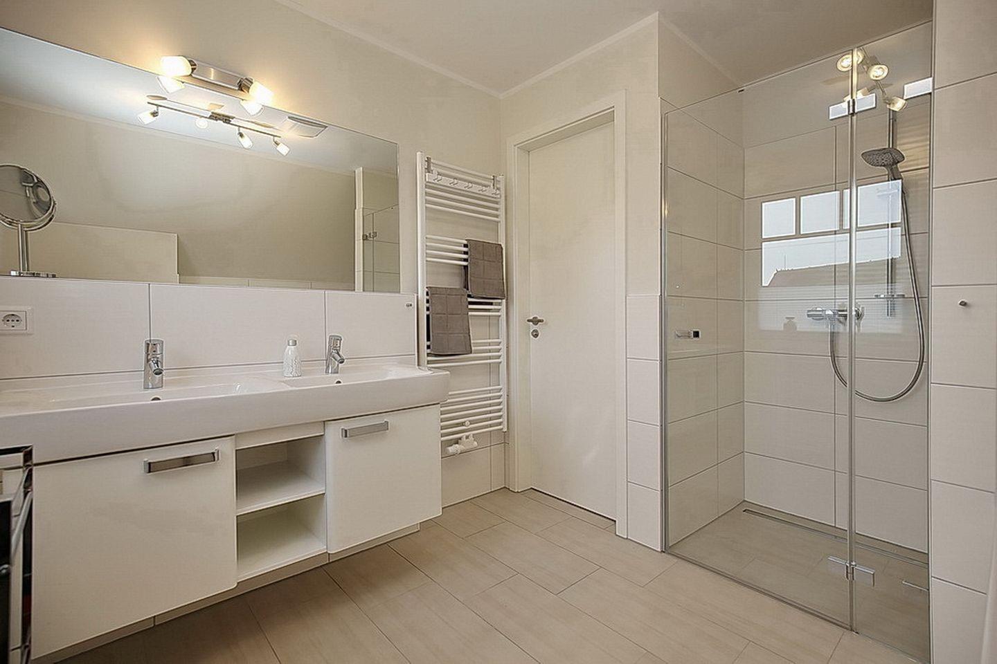 In den zwei Schlafzimmern im Obergeschoss stehen dir zwei Doppelbetten (2 x 90 x 200 cm), jeweils ein TV und Schränke mit viel Platz für deine Urlaubsgarderobe zur Verfügung. Das geräumige Badezimmer ist mit einem Doppelwaschbecken mit Unterschrank, Badewanne und separater Dusche ausgestattet.