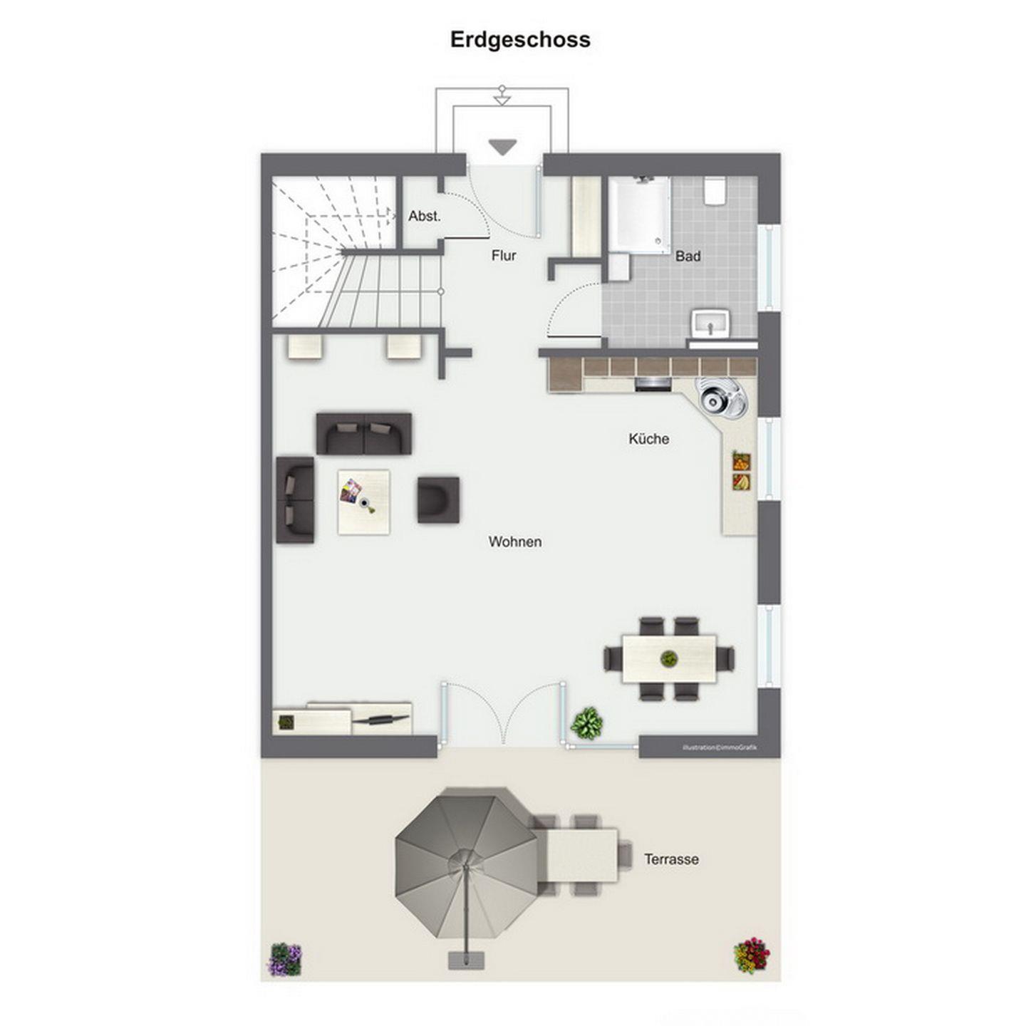 Das Bad im EG ist mit einer Dusche ausgestattet.