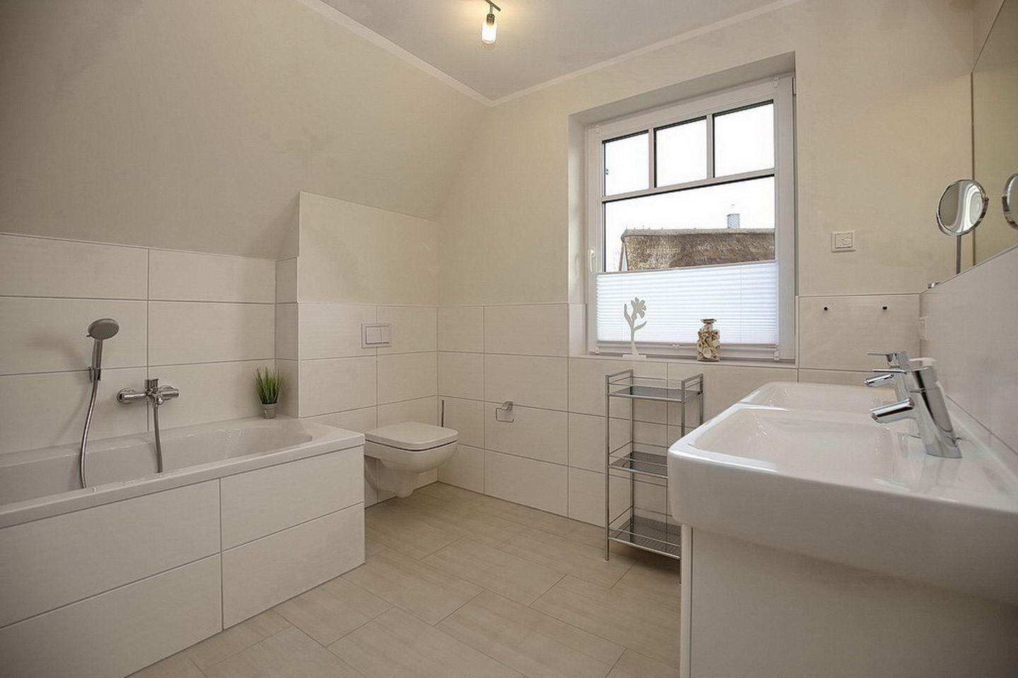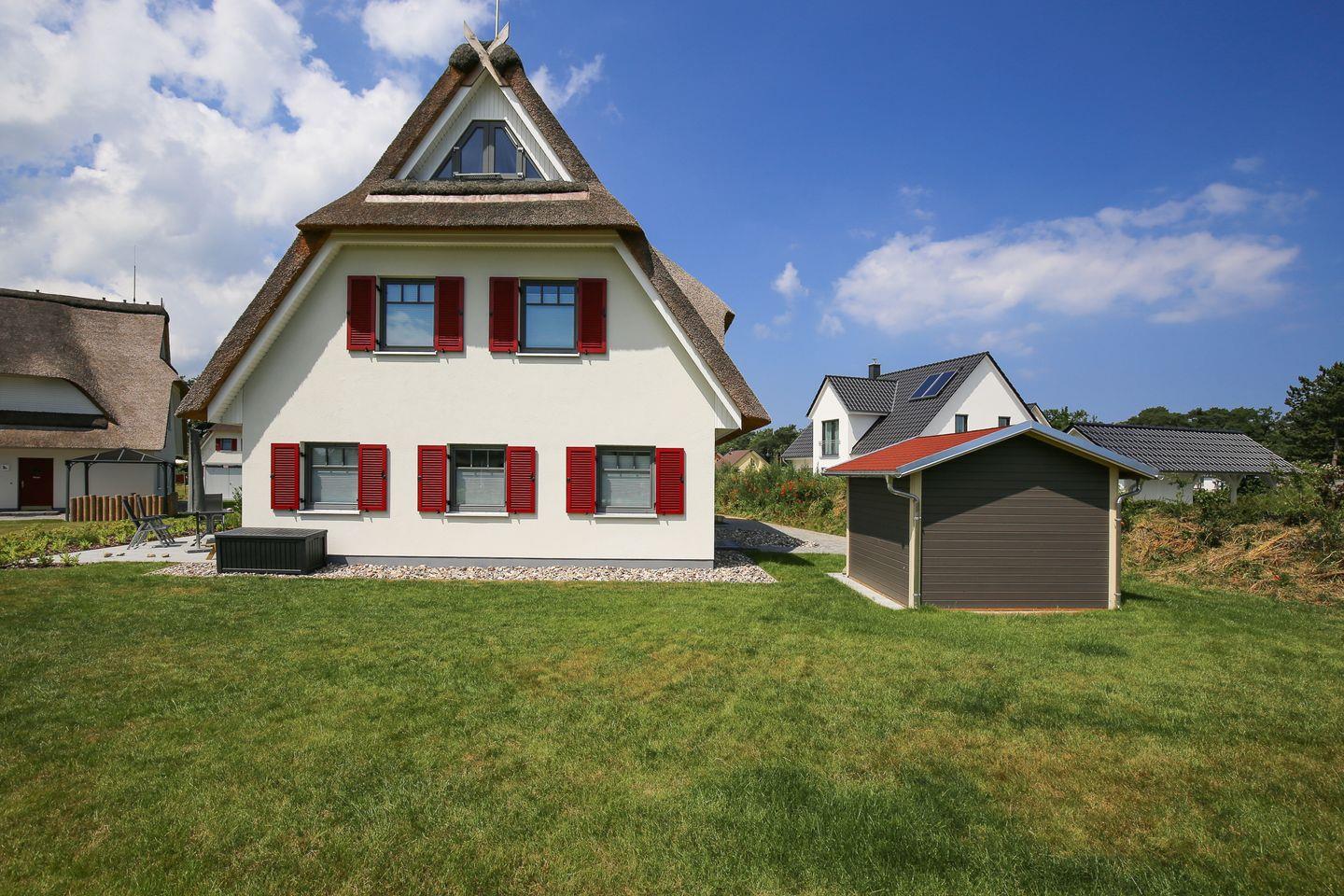 Auf drei Etagen vereint die großzügige Doppelhaushälfte mit Reetdach einen Wohnraum mit Zugang zur Terrasse, drei Schlafzimmer und zwei moderne Bäder. Zusammen mit dem Spitzboden hast du hier auf ca. 100 m² viel Platz für deinen Urlaub.