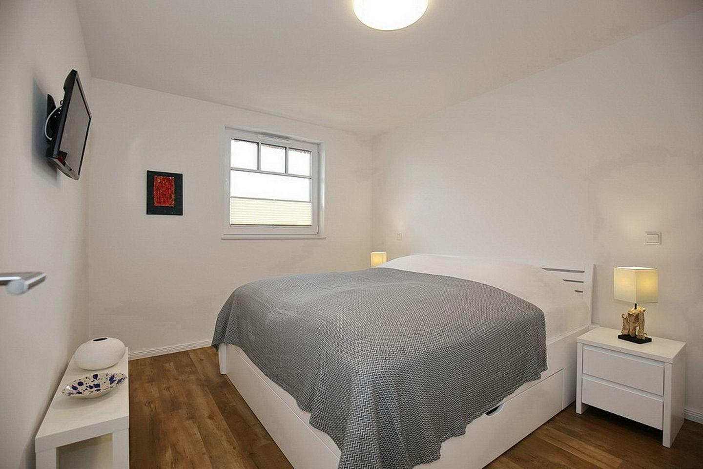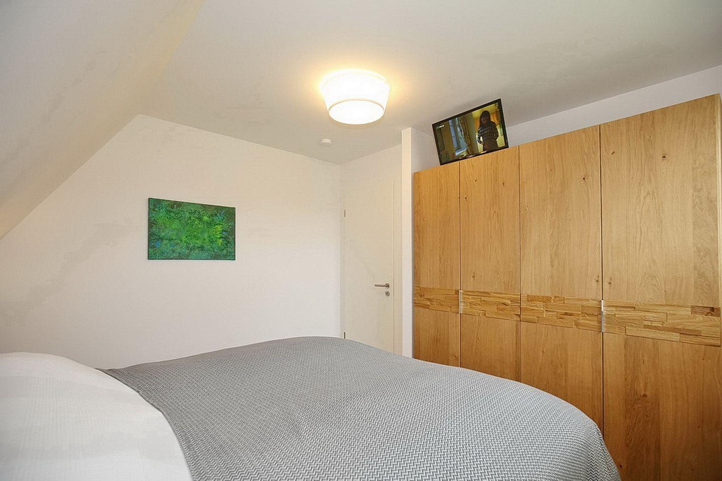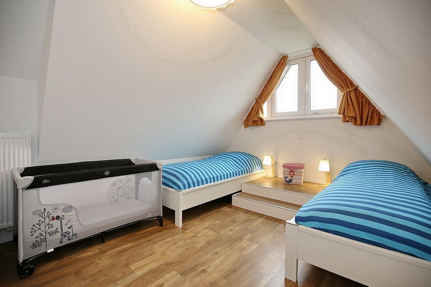 In den zwei Schlafzimmern im Obergeschoss stehen dir zwei Doppelbetten (2 x 90 x 200 cm) und Schränke mit Platz für deine Urlaubsgarderobe zur Verfügung. Das geräumige Badezimmer ist mit einem Waschbecken und einer Badewanne ausgestattet.
