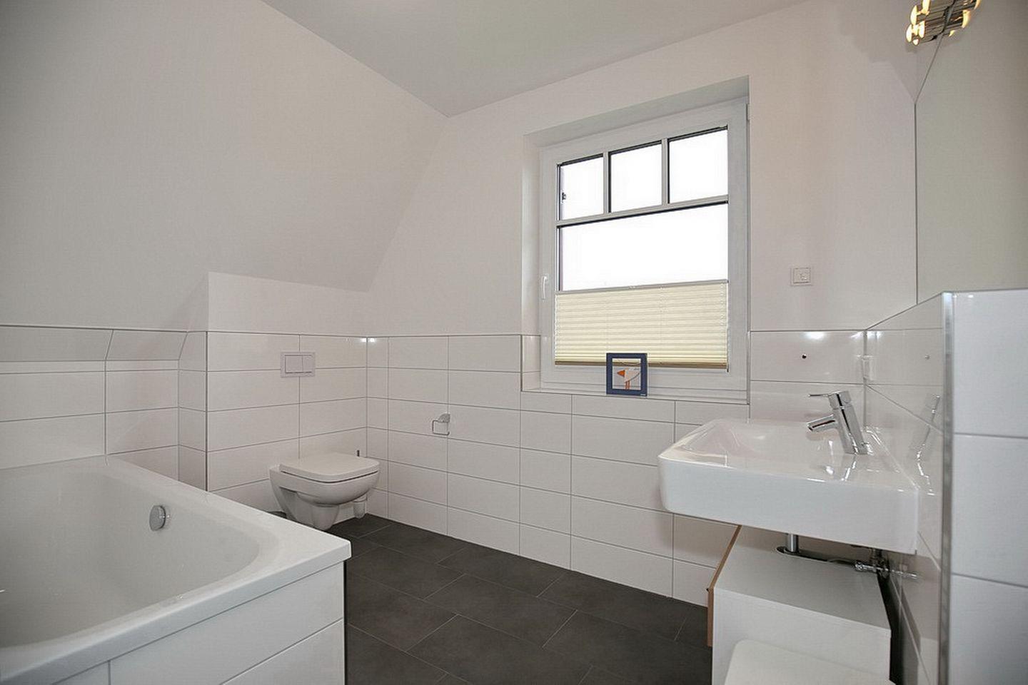 Auf drei Etagen vereint die großzügige Doppelhaushälfte mit Reetdach einen Wohnraum mit Zugang zur Terrasse, drei Schlafzimmer und zwei moderne Bäder. Zusammen mit dem Spitzboden hast du hier auf ca. 100 m² viel Platz für deinen Urlaub.