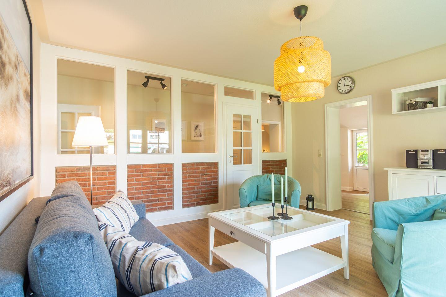 Mit einer Größe von ca. 70 m² bietet dir unsere Erdgeschosswohnung mit einer gemütlichen Küche mit großem Esstisch, einem Wohnzimmer, zwei separaten Schlafzimmern, einem Duschbad viel Platz für einen erholsamen Urlaub.