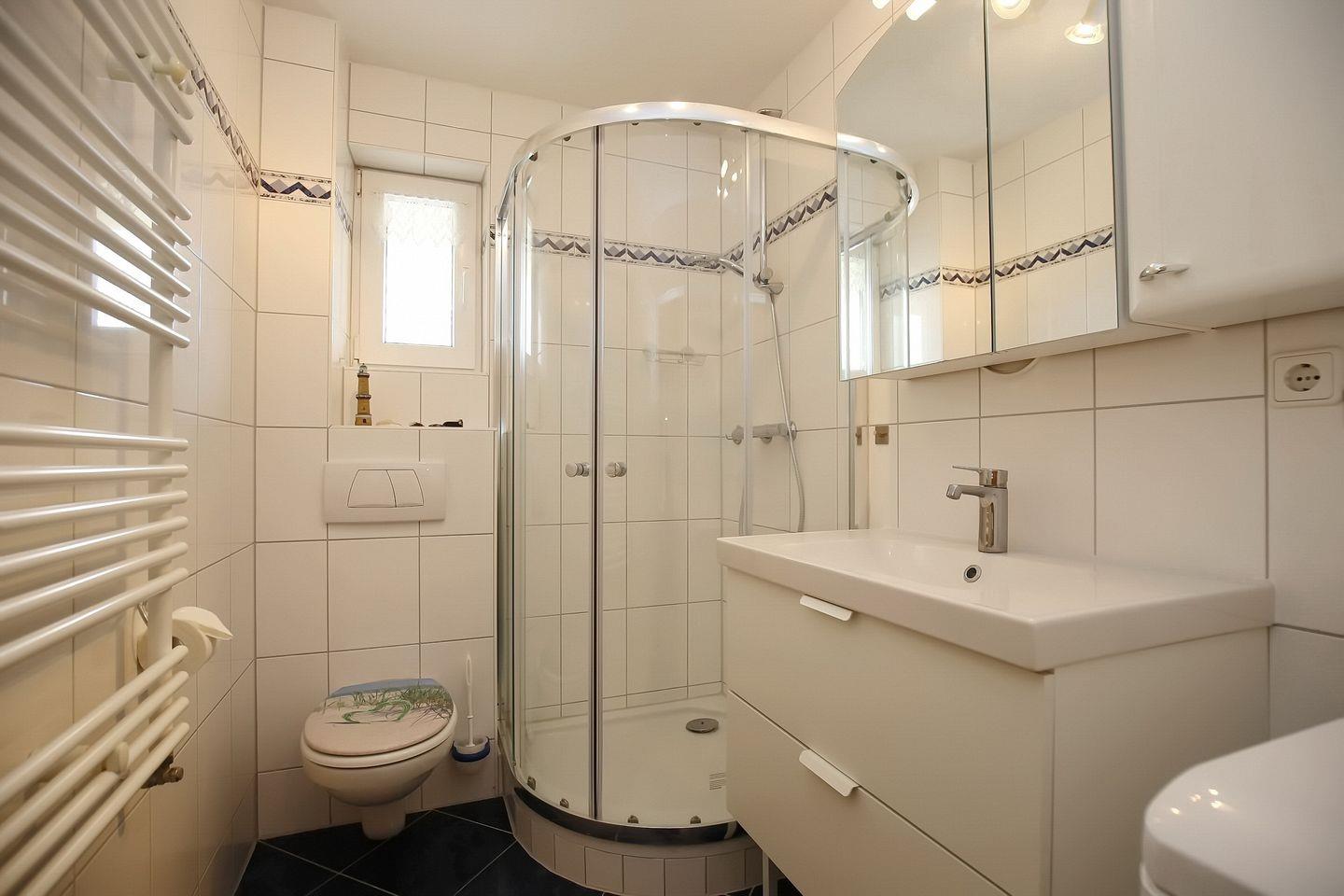 Das Duschbad der Ferienwohnung wird abgerundet durch ein Fenster. In dieser Nichtraucherwohnung sind Haustiere nicht erlaubt. Für die kleinen Gäste steht ein Kinderreisebett bereit. WLAN (ohne Gewähr) steht kostenlos zur Verfügung.