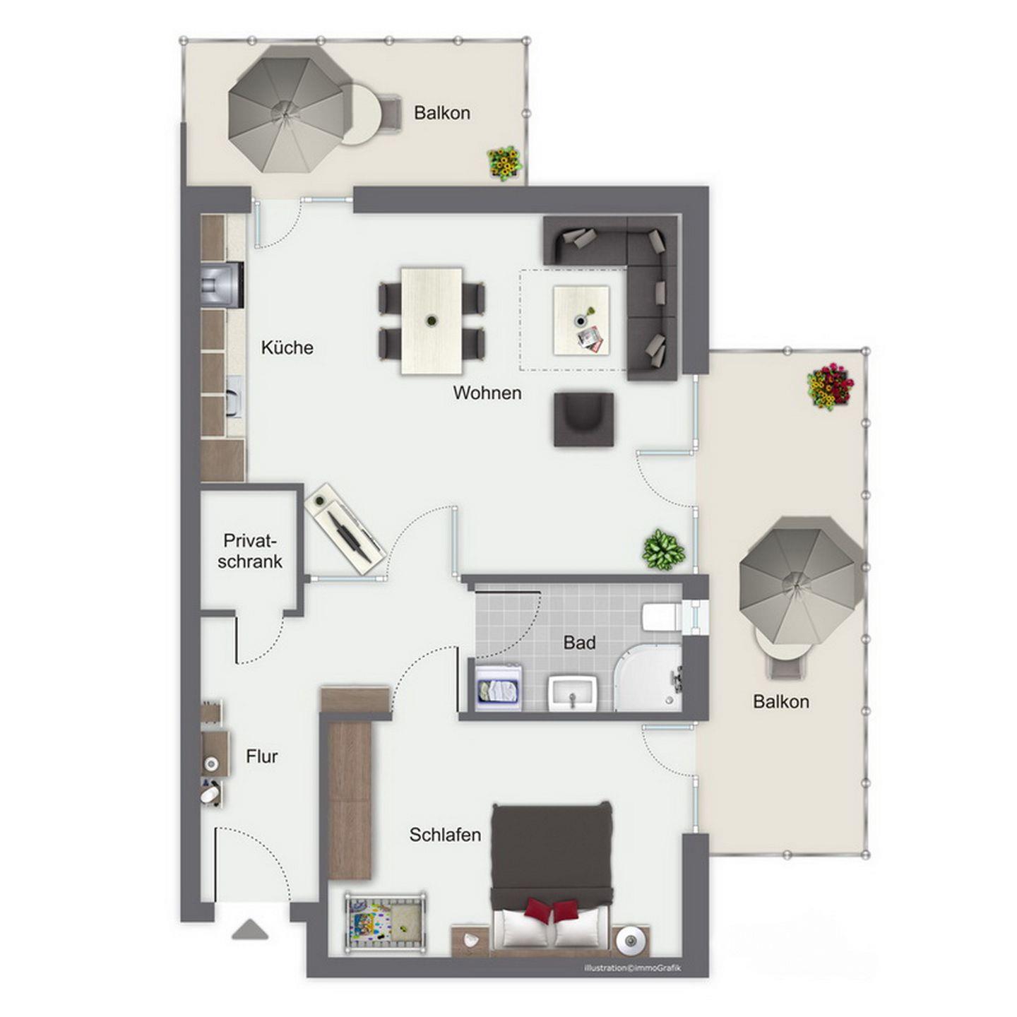 Wohnfläche 54 m²