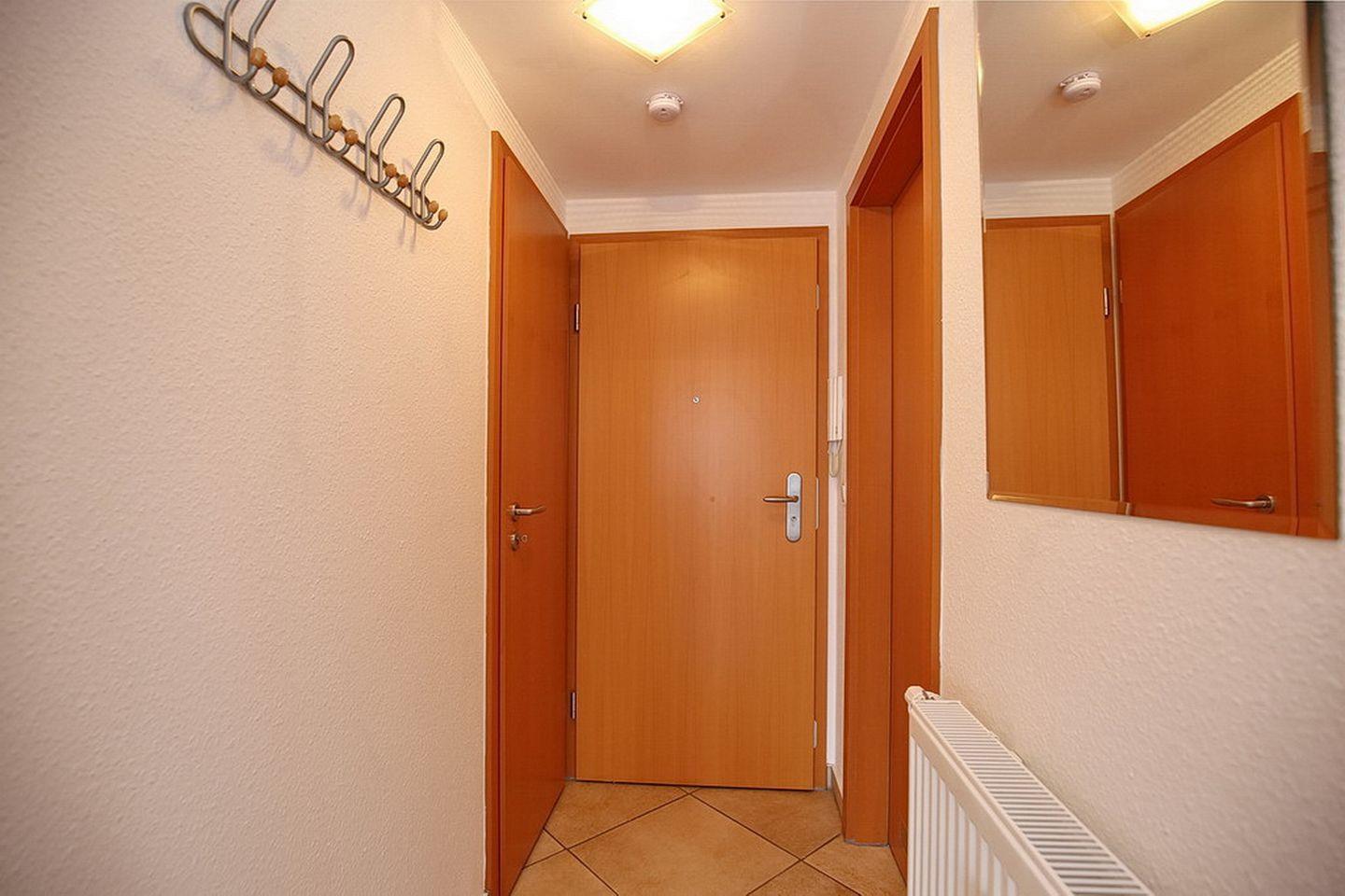 Auf dem Flur in einem separaten Abstellraum ist Platz für deine Kleidung und Reiseutensilien. In einer Kommode findest du weitere Ablagemöglichkeiten für deine Garderobe. Als Abdunkelung dienen Vorhänge an den Fenstern. Für Kurzweil sorgen in der Ferienwohnung ein Flachbild-TV und eine Stereoanlage.