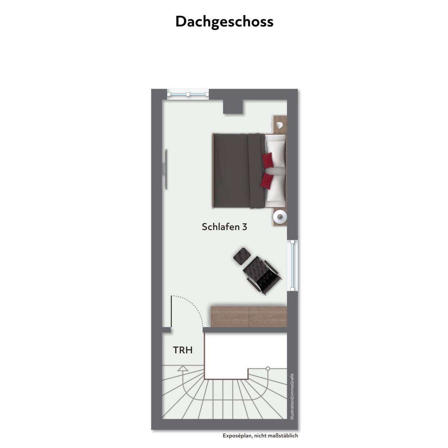 Das dritte Schlafzimmer befindet sich im 2. Obergeschoss. Dieses Zimmer ist mit einem Doppelbett (2x 90 x 200) und einem zusätzlichen TV eingerichtet.