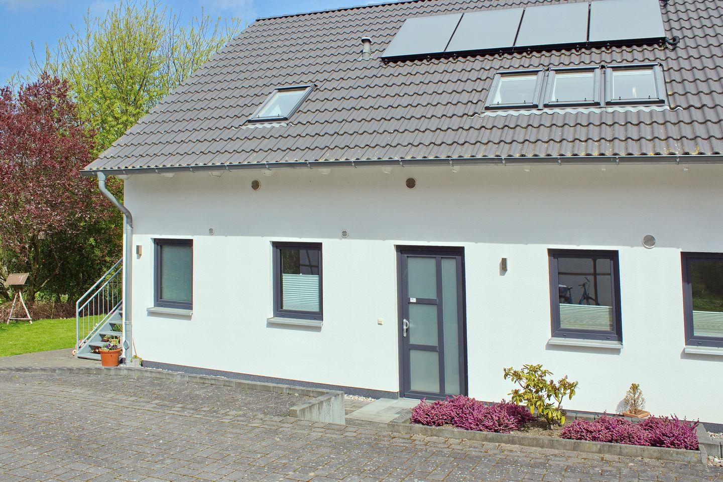 Bis zu 4 Personen können in der modernen Ferienwohnung ihren Ostseeurlaub genießen. Sie ist ca. 86 m² groß. Die gemütlich eingerichtete Ferienwohnung ist mit einer Terrasse in Nord-Ost-Lage ausgestattet. Sie bietet dir einen Wohnraum mit Kamin, zwei Schlafzimmer, eine separate Küche und ein Duschbad.