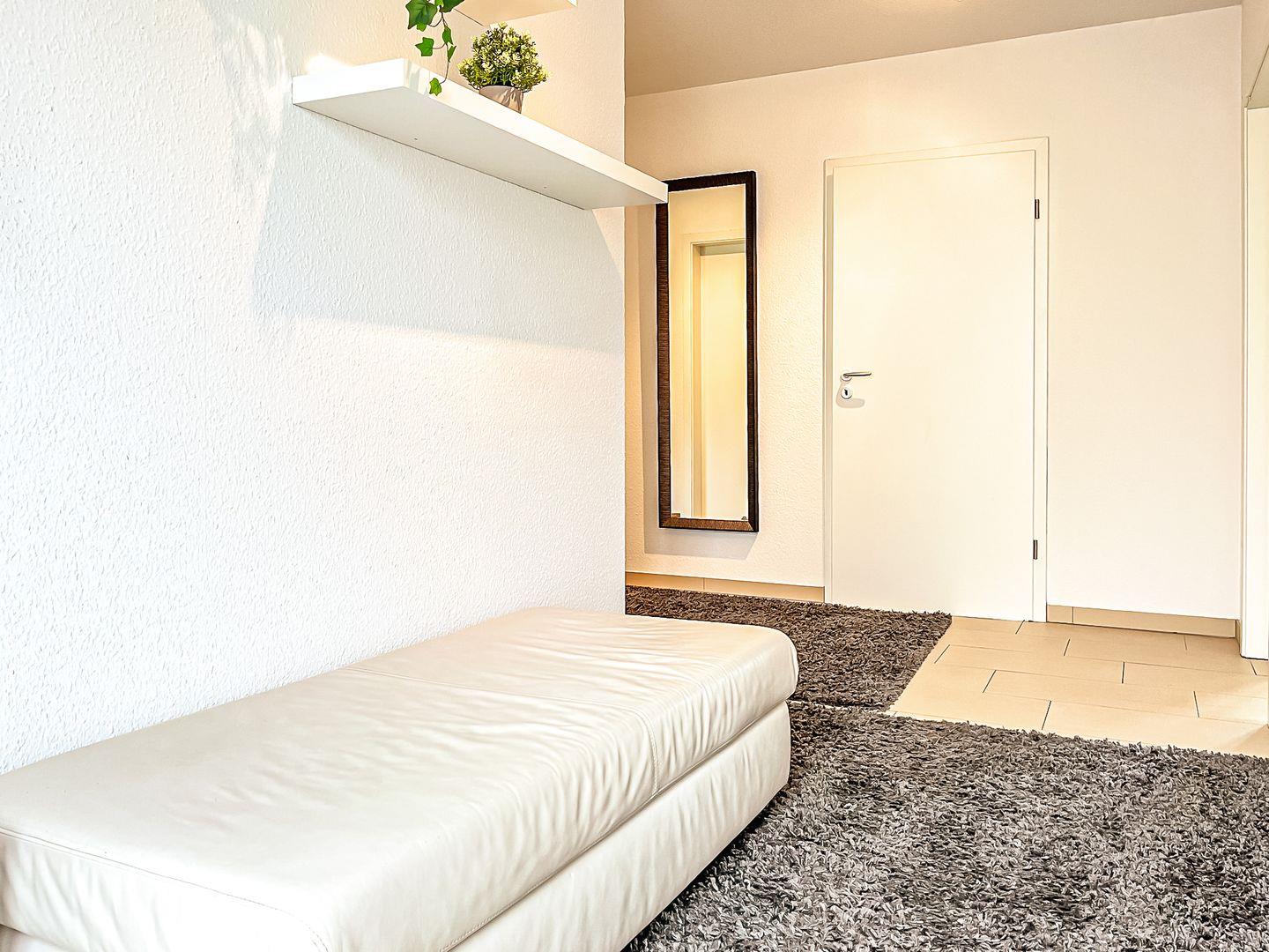 Der gesamte Wohnbereich ist gefliest. Diese Wohnung ist eine Nichtraucherwohnung, Haustiere sind hier nicht erlaubt.