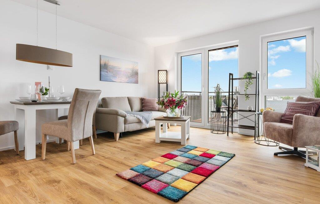 Die lichtdurchflutete Wohlfühloase mit bodentiefer Fensterfront und Balkon bietet ein wunderbares Hafenkino mit Blick auf die schwimmenden Häuser, den Ostseefjord Schlei mit vorbeifahrenden Segelschiffen und den Leuchtturm von Schleimünde. Macht es euch auf dem Balkon gemütlich und beobachtet die vorbeifahrenden Segelschiffe in Begleitung der farbenfrohen Abendsonne oder nutzt bei Schmuddelwetter die Sofaecke im Wohnbereich, sodass die Fußbodenheizung euch wärmen kann.
