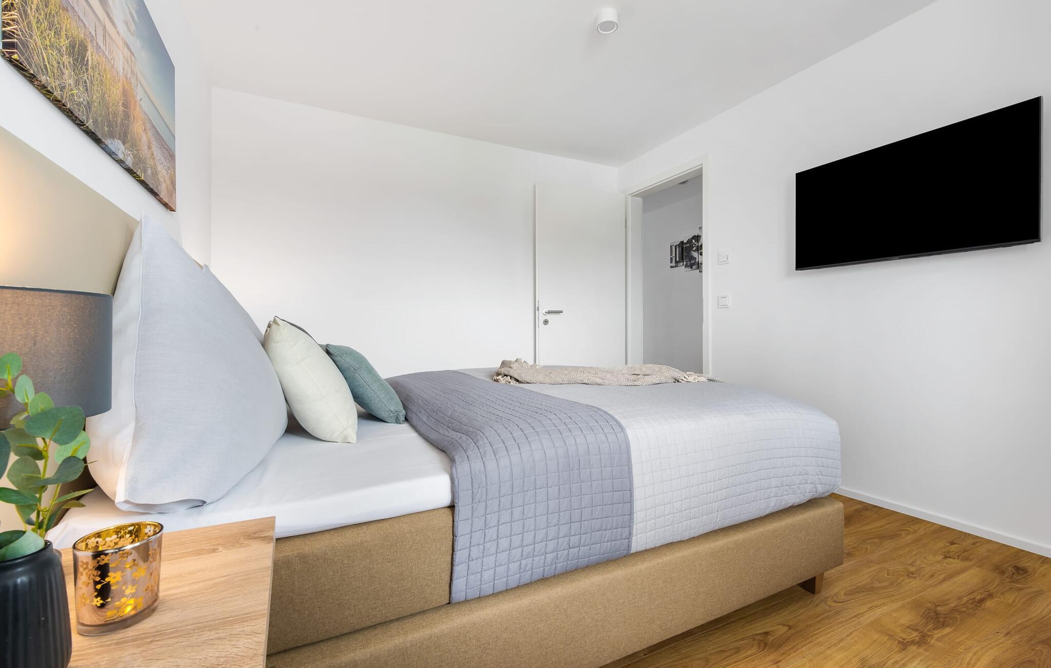 Die sportlich romantische Einrichtung der Wohnung überzeugt durch ihr modernes Flair und die gelungene räumliche Verbindung der Küchenzeile zu dem exklusiven Wohnbereich, welche die komfortable Atmosphäre der ruhigen Umgebung hervorhebt. Für die Unterhaltung stehen Gemeinschaftsspiele und Bücher zur Verfügung.