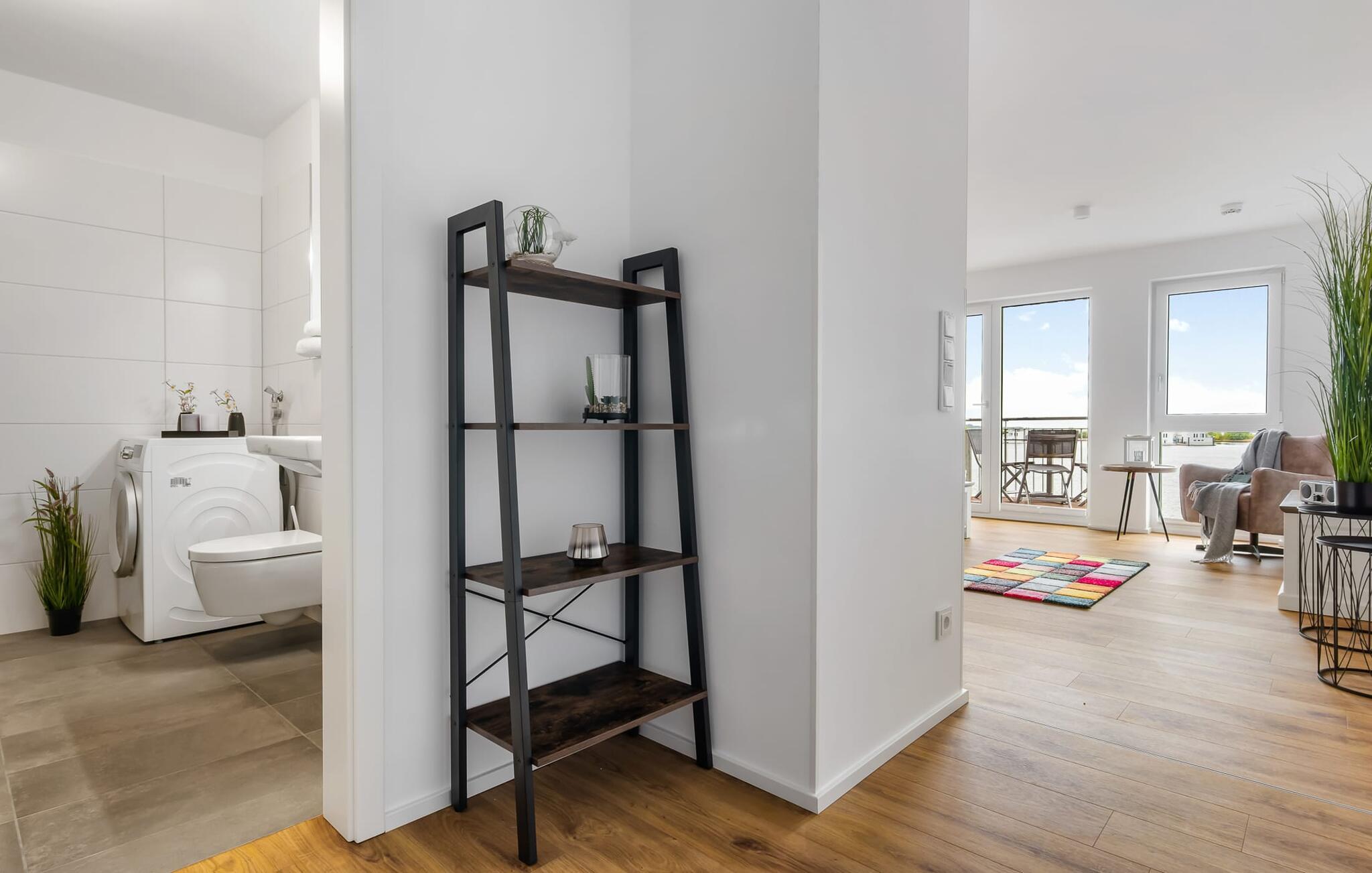 Die lichtdurchflutete Wohlfühloase mit bodentiefer Fensterfront und Balkon bietet ein wunderbares Hafenkino mit Blick auf die schwimmenden Häuser, den Ostseefjord Schlei mit vorbeifahrenden Segelschiffen und den Leuchtturm von Schleimünde. Macht es euch auf dem Balkon gemütlich und beobachtet die vorbeifahrenden Segelschiffe in Begleitung der farbenfrohen Abendsonne oder nutzt bei Schmuddelwetter die Sofaecke im Wohnbereich, sodass die Fußbodenheizung euch wärmen kann.