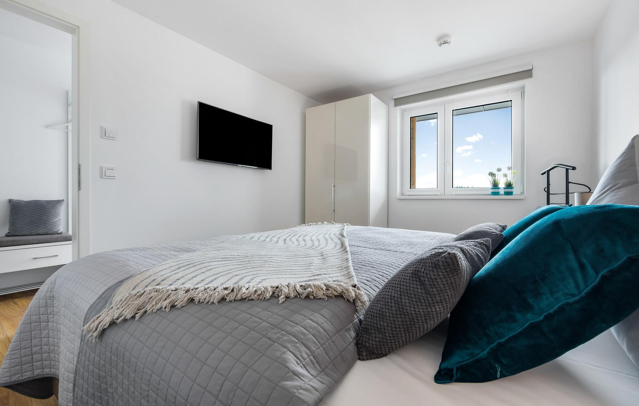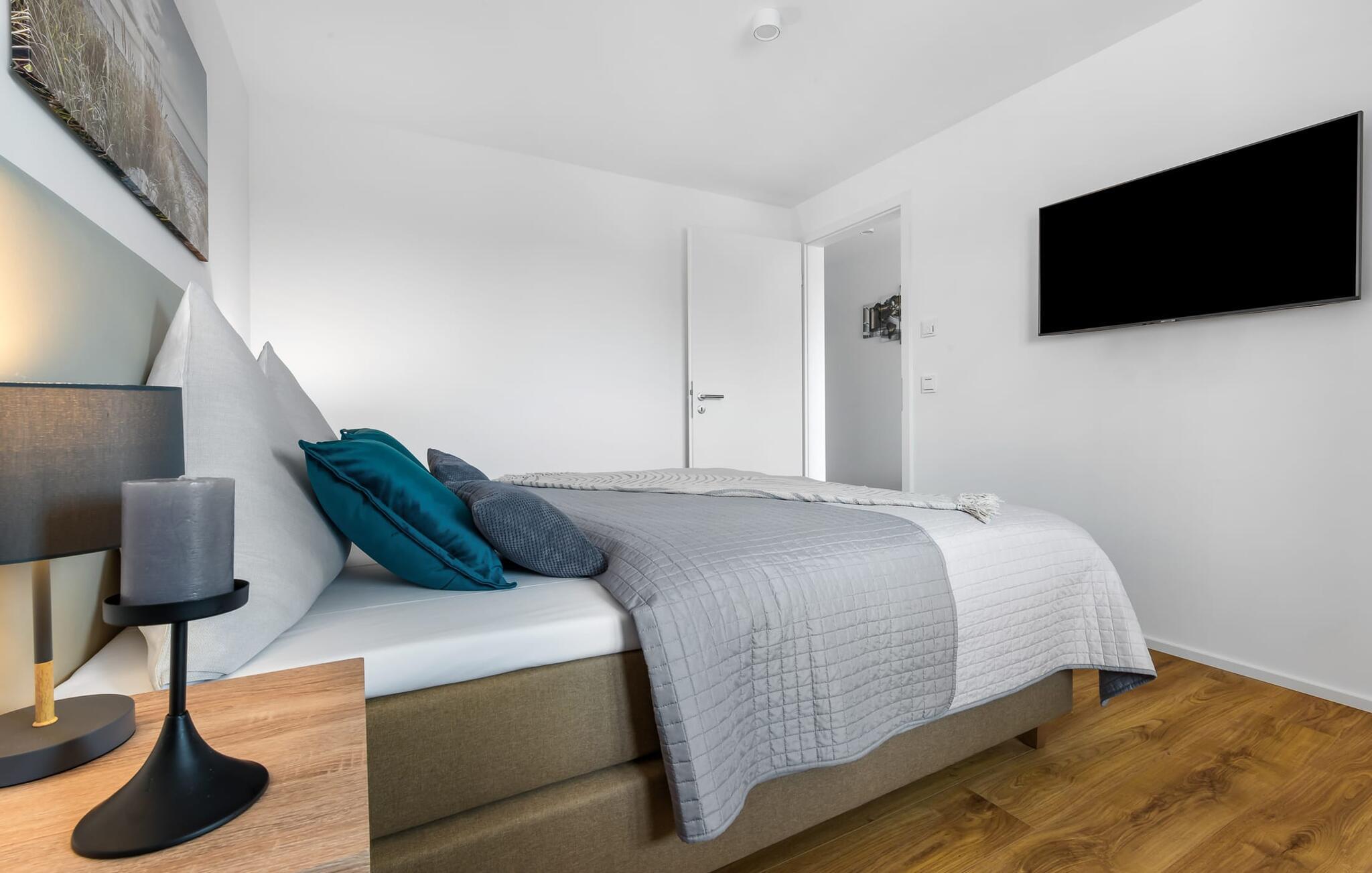 Die sportlich romantische Einrichtung der Wohnung überzeugt durch ihr modernes Flair und die gelungene räumliche Verbindung der Küchenzeile zu dem exklusiven Wohnbereich, welche die komfortable Atmosphäre der ruhigen Umgebung hervorhebt. Für die Unterhaltung stehen Gemeinschaftsspiele und Bücher zur Verfügung.