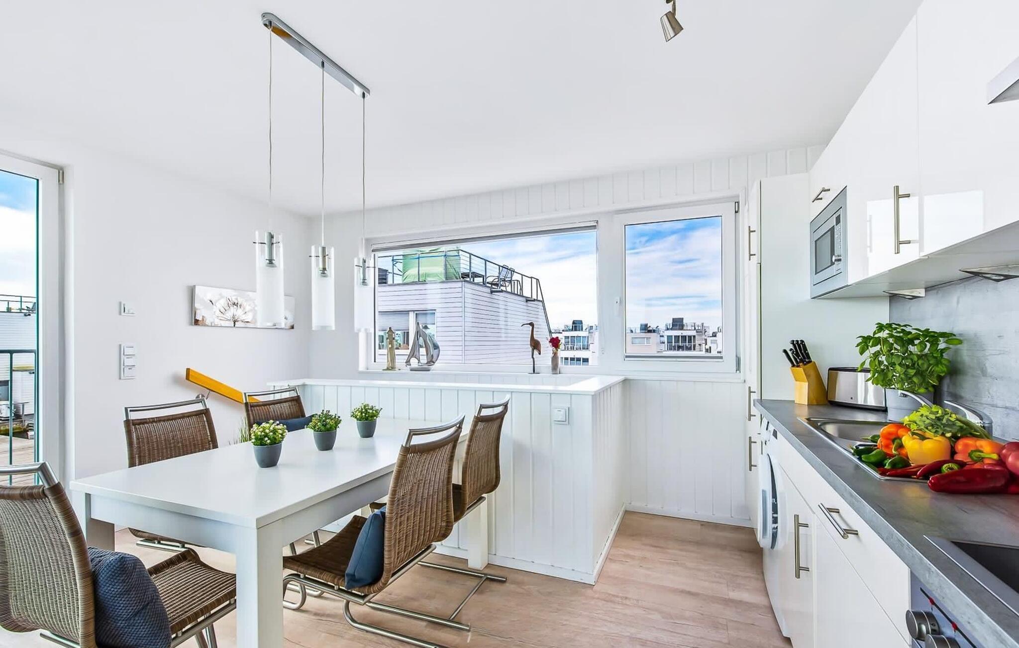 Die an den Wohnbereich angrenzende Wohnküche zeichnet sich durch eine behagliche und freundliche Atmosphäre aus. Hier kann man nach Herzenslust kochen und dabei der Kreativität freien Lauf lassen.
