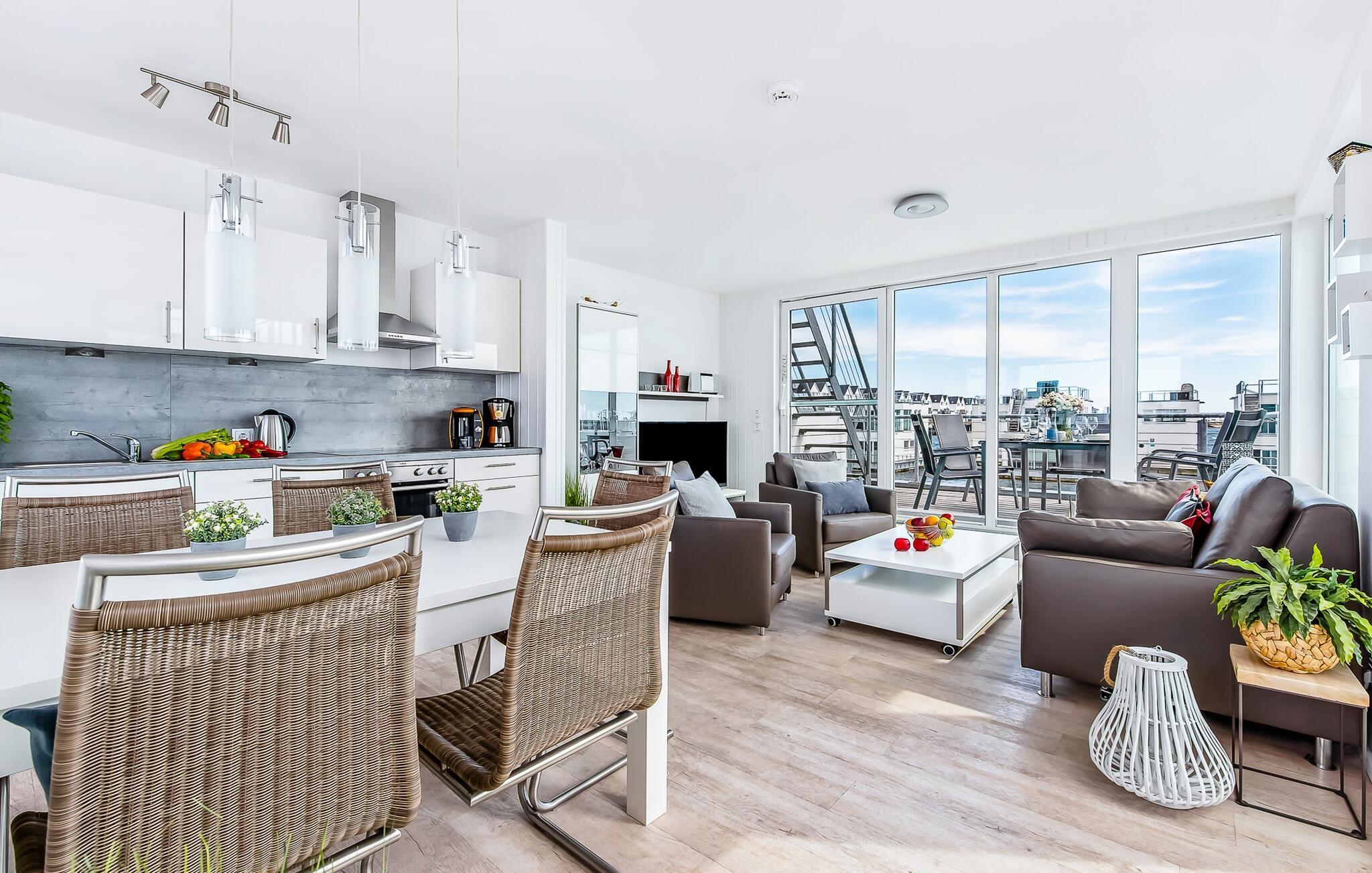 Unser Lieblingsplatz: Bei einem Glas Wein im Strandkorb auf der Dachterrasse den Blick in die Weite schweifen lassen, das ist Erholung pur!