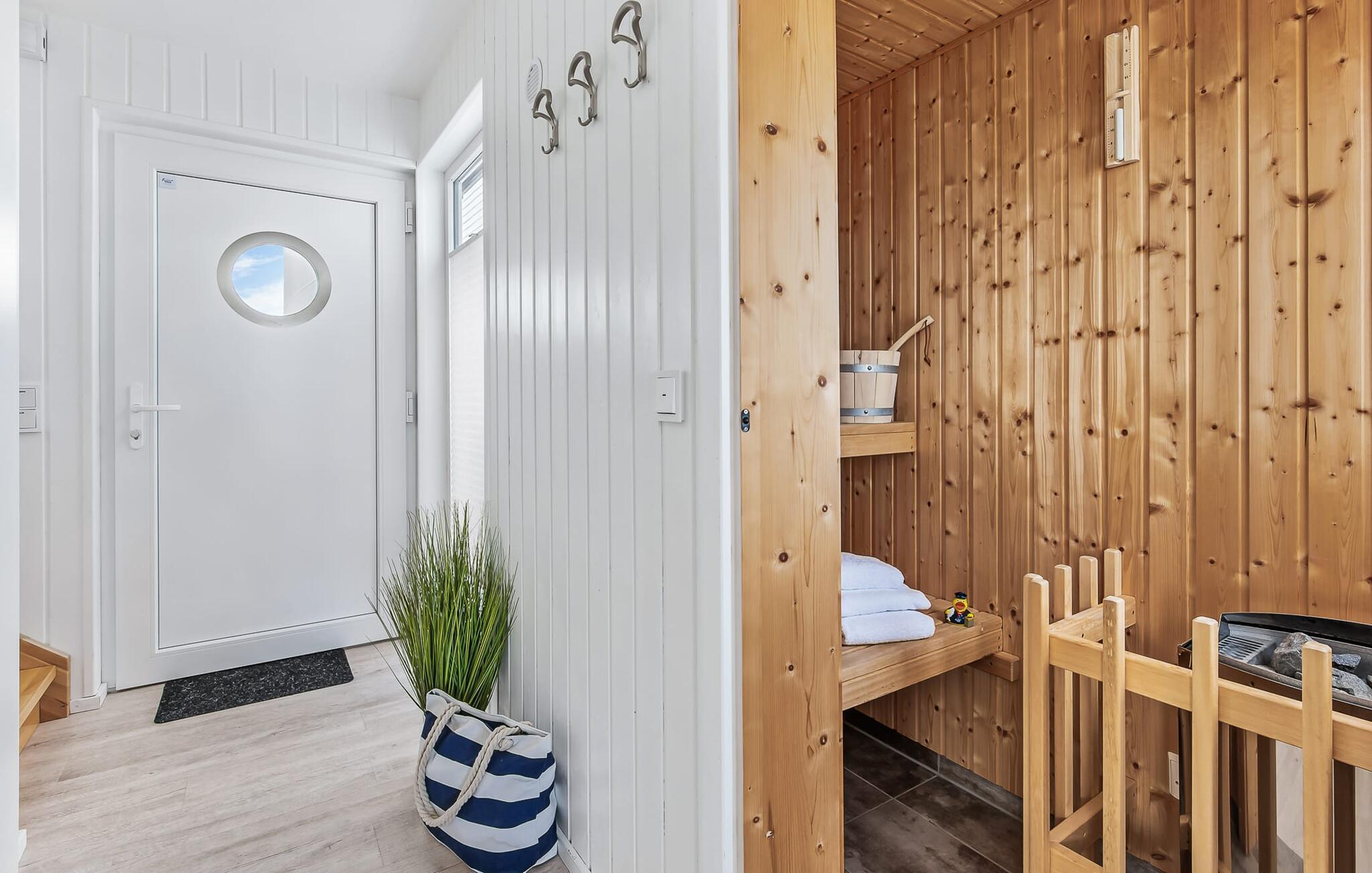 Das schwimmende Ferienhaus ist ein Hausboot mit Wellnessfaktor, die finnische Sauna mit Wasserblick sorgt für Entspannung und die Fußbodenheizung im gesamten Haus verspricht wohligen Komfort zu jeder Jahreszeit.