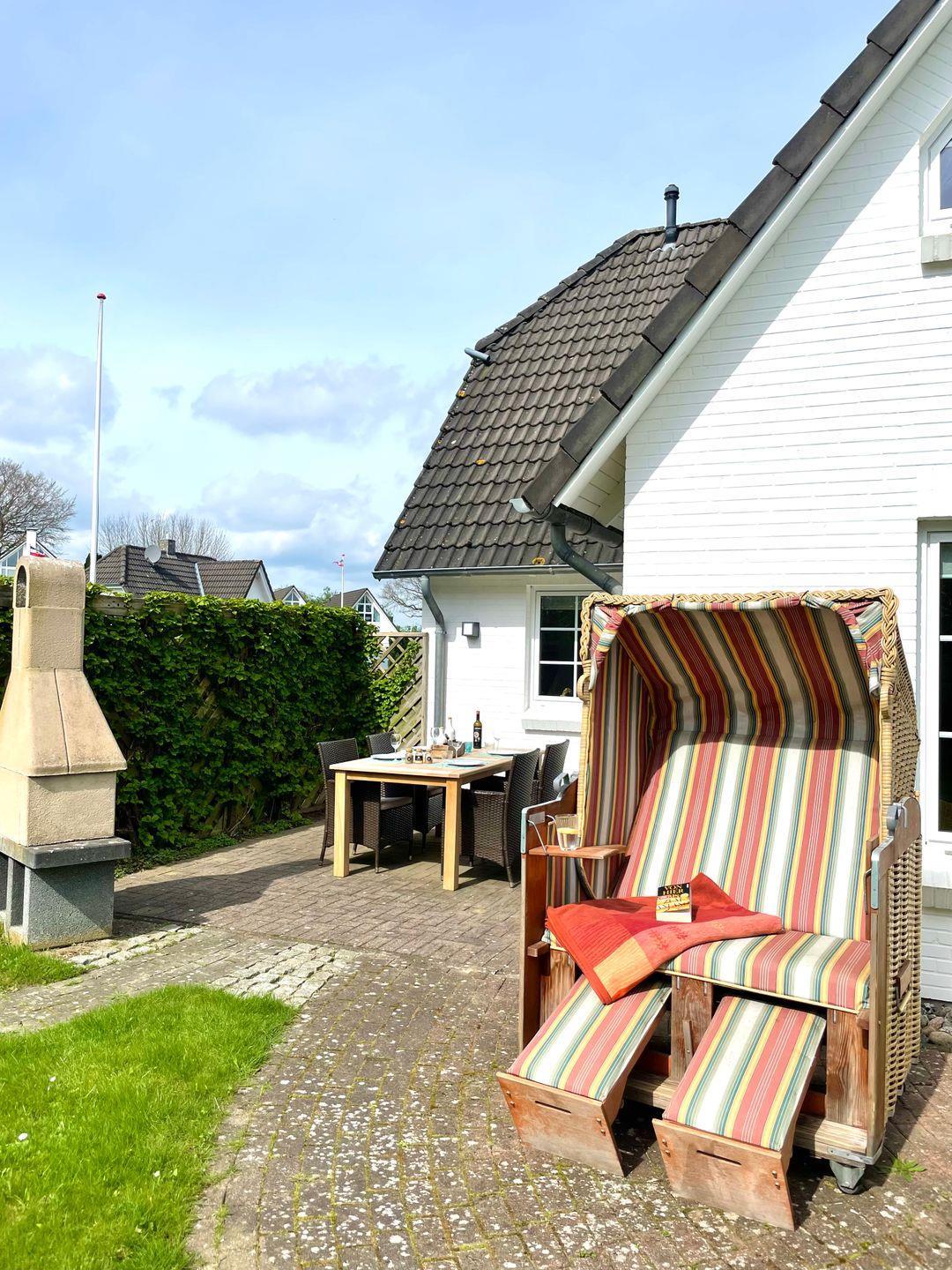 Exklusives Ferienhaus Priwall in Lindaunis mit Sauna, zwei Terrassen, eingezäuntem Garten und Strandkorb für entspannte Urlaubstage.